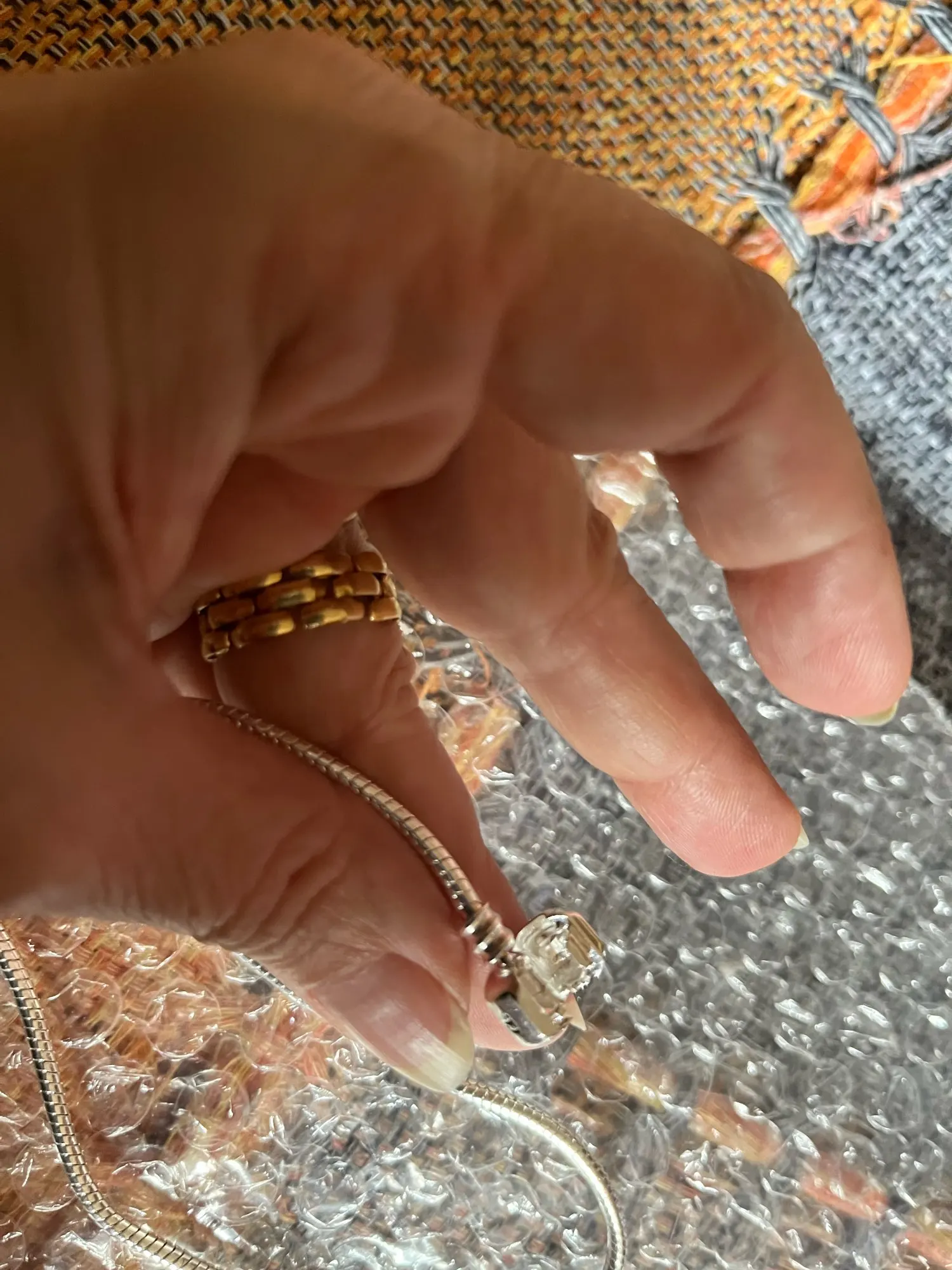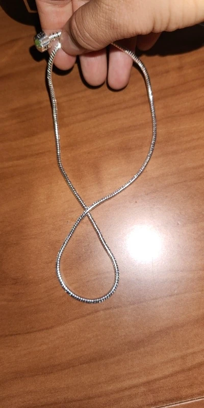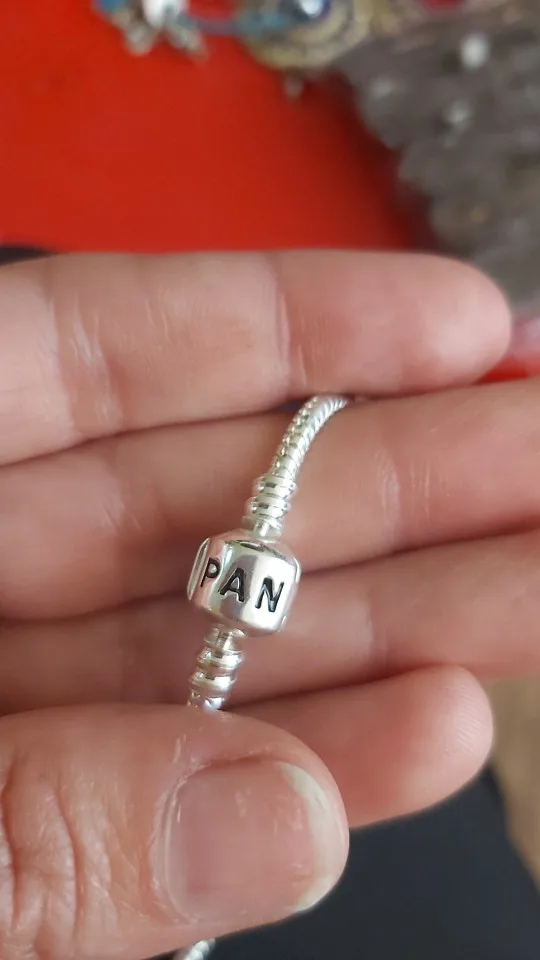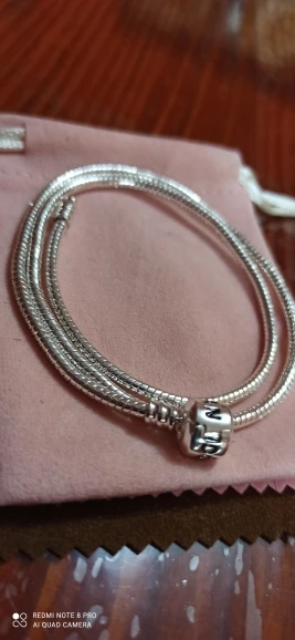 Ожерелье очень красивое, имеет прекрасный блеск, только луч, где написано Пандора замок не идеально. Откройте один. Я боюсь открыть его и потерять его. Он открывается без минимального усилия, думаю, что не посчастливилось. Другая часть, браслет, купил идеально.