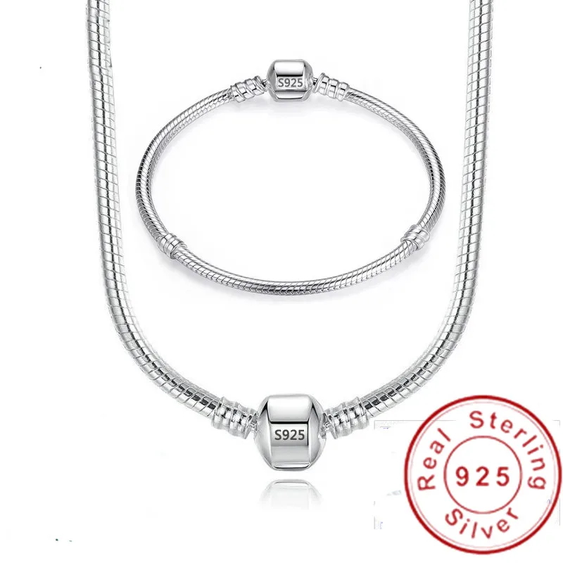 Женский комплект из ожерелья и браслета ручной работы, вечерние серебра 925 пробы