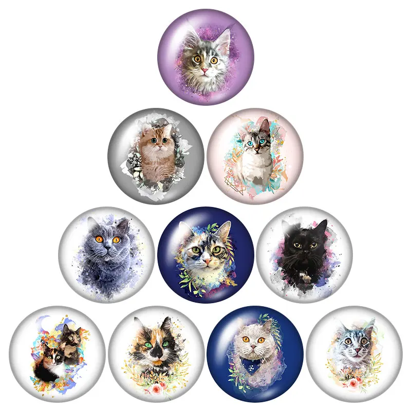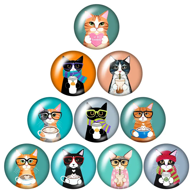 Модные милые кошки 10 шт. 12 мм18 мм20 мм25 мм круглые фото стекло ...