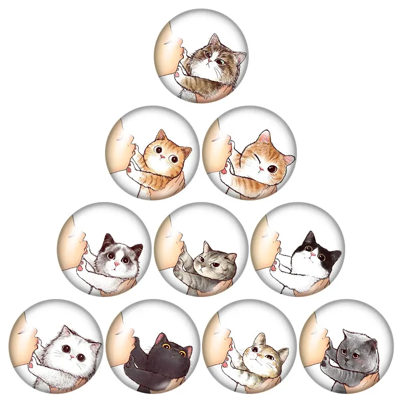 Новые милые коты 1 лот (10 шт.) 12 мм16 мм18 мм25 мм круглые фото С...