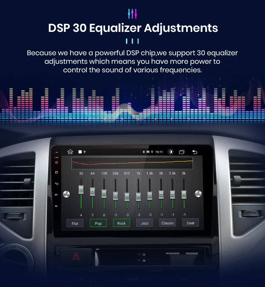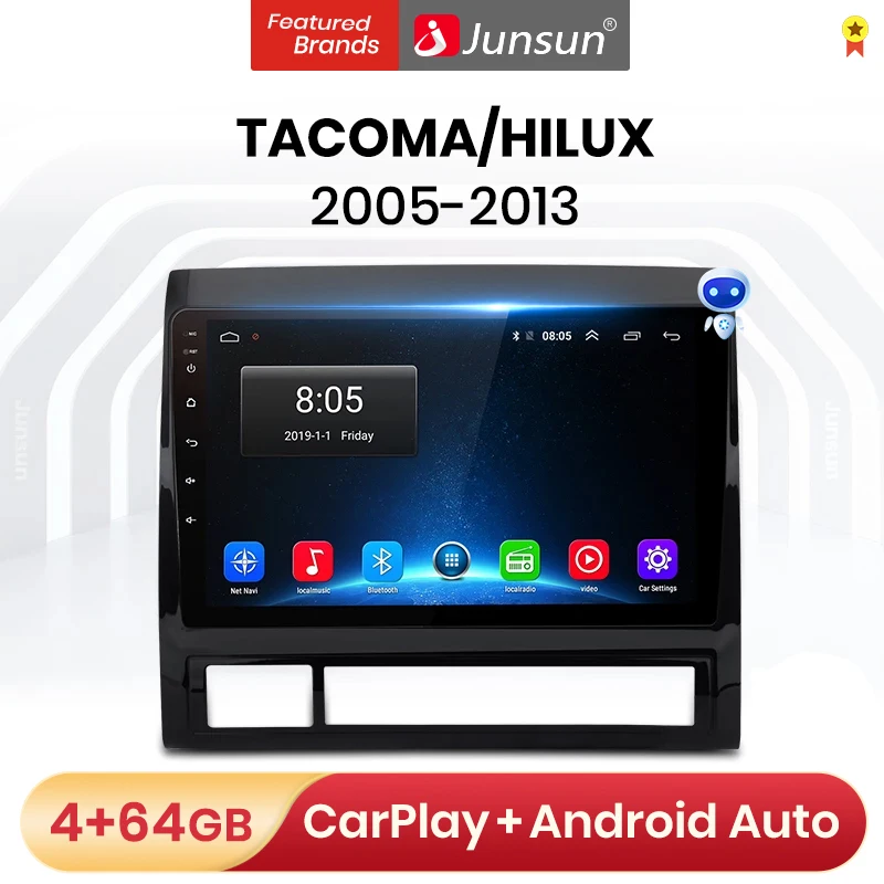 > Junsun V1 Pro для TOYOTA TACOMA/HILUX 2005-2013 функции9 дюймов 2.5D емкостный Экран + восемь ядер 1,8 ГГц Процессор + DDR3 2 ГБ/4 Гб (опционально) флэш-память + 32 ГБ/64 Гб памяти (опционально) + Встроенная сеть 4G + gps-навигация (бесплатное обновление карты, только бренд Junsun Поддержка) + управление рулевым колесом + зеркальная связь + Bluetooth + Встроенный микрофон + FM/AM + RDS (опционально) + Поддержка USB ADAS DVR Функция + Европейская DAB функция + 1080P видео воспроизведение + HD 1024*600 + контроль давления в шинах Система > OSD языкРусский, английский, испанский, итальянский, французский, чешский, арабский, немецкий, иврит, китайский, эстонский, польский, филиппинский, финский, корейский, голландский, хорватский, латышский, литовский, румынский, норвежский, португальский, японский, шведский, тайский, турецкий, украинский, венгерский, словацкий, датский, словенский. > 24H * 7 поддержка обслуживанияВ Junsun Наша цель-продолжать усердно работать, чтобы сделать инновационное оборудование и программное обеспечение автомобильного мультимедийного плеера радио, чтобы дать вам этот индивидуальный опыт.Мы предоставляем обновления для прошивки, программного обеспечения, gps-навигационных карт бесплатно.