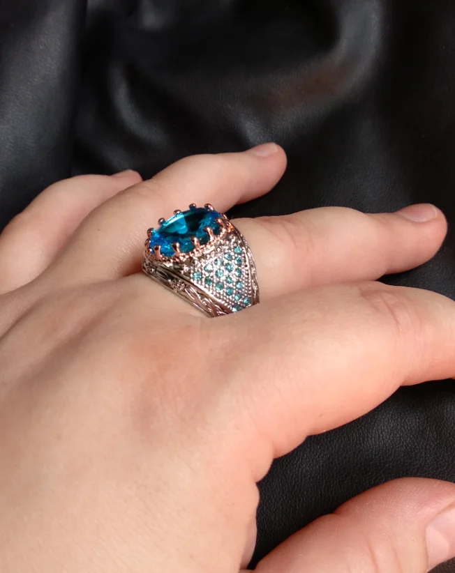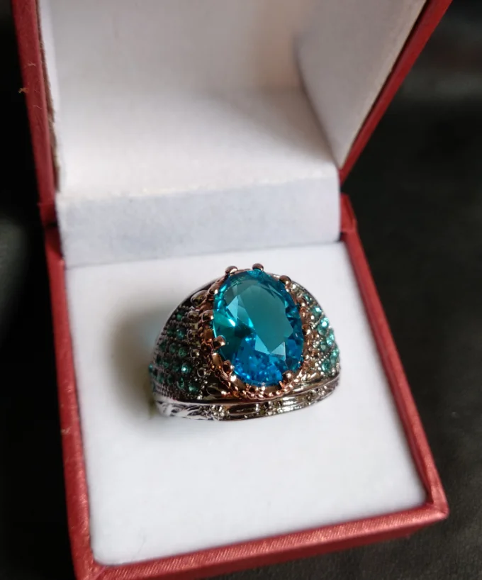 Страна: MX Metal Color: Two Tone Main Stone Color: Sky Blue Ring Size: 9 Доставка: Cainiao Super Economy Global 24.07.2021