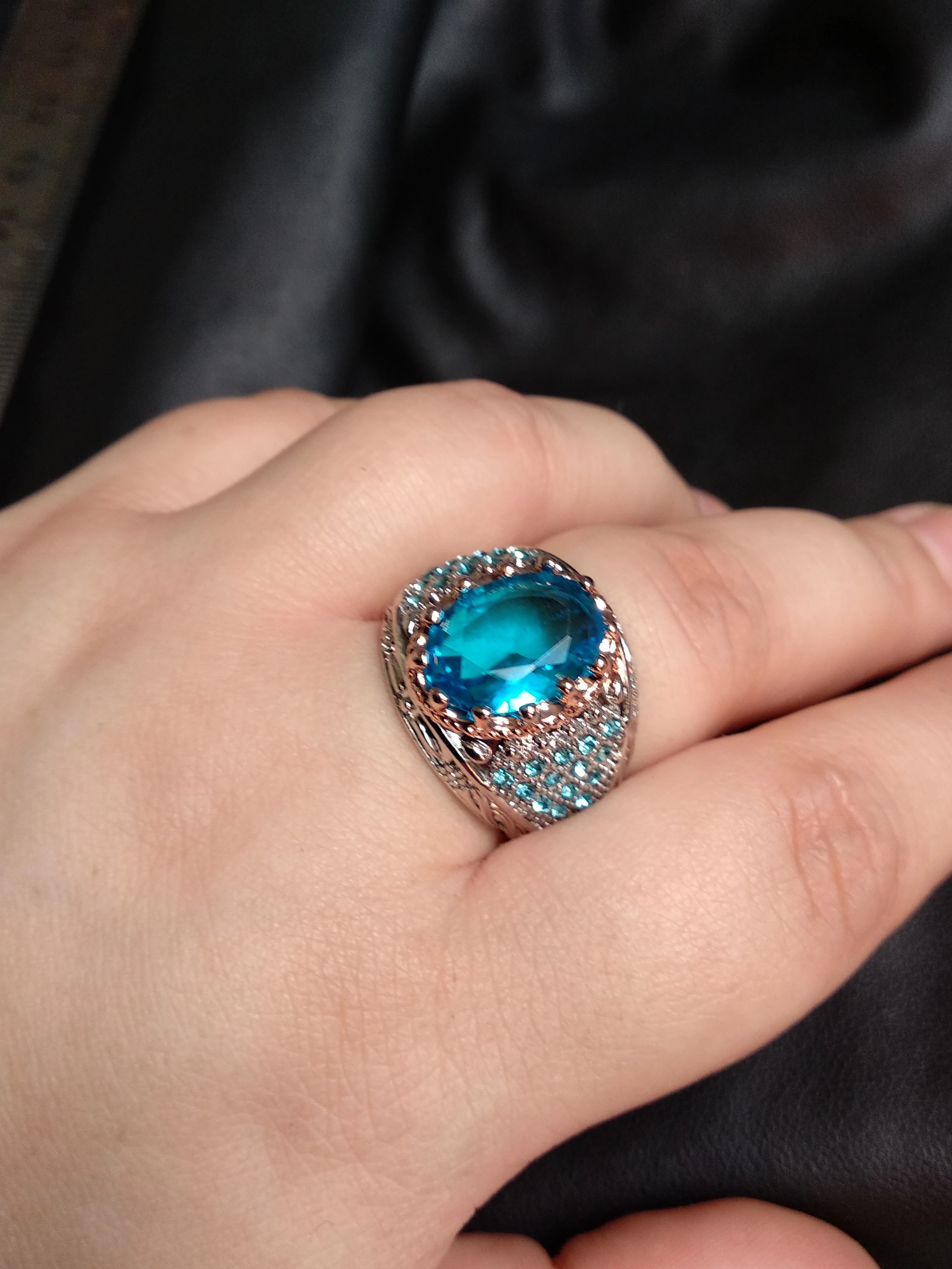 Страна: RU Metal Color: Two Tone Main Stone Color: Sky Blue Ring Size: 9 Доставка: Cainiao Super Economy 06.08.2021