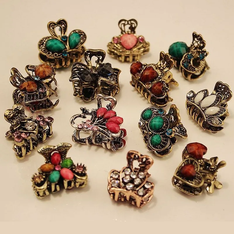 Заколка для волос в ретро-стиле женская, резиновый Мини-зажим с бабочкой, аксессуары для укладки волос, инструмент для свадебного подарка, корона, заколка-пряжка для волос, ювелирные изделия, 10 штук