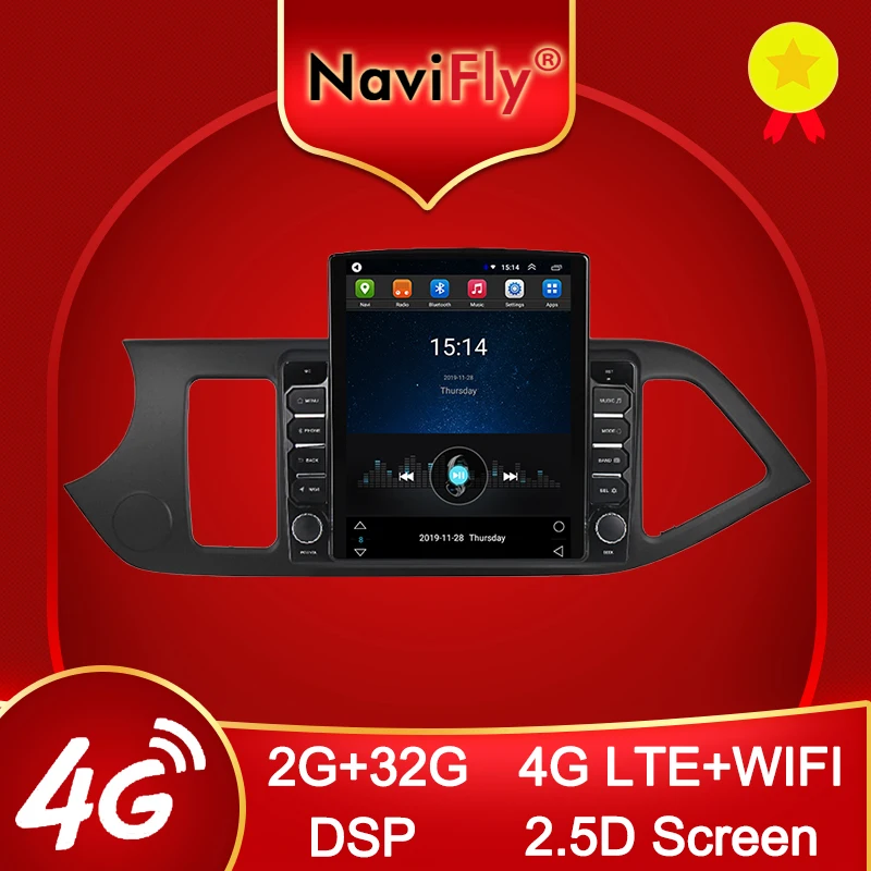 Navifly 9,7 "Tesla стиль для Kia Morning picanto 2011 - 2017 Android радио Автомобильный мультимедийный плеер навигация gps No 2 din DVD