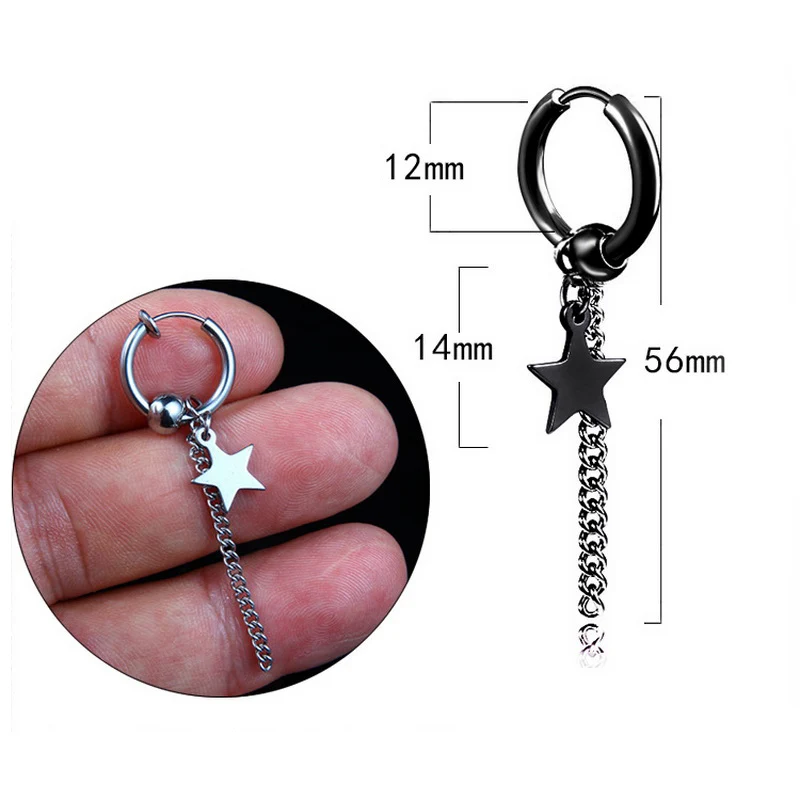 Серьги-гвоздики из нержавеющей стали, Ювелирное Украшение в стиле панк с крестом и звездами, черные украшения для ушей в стиле хип-хоп, готический уличный поп, 1 шт.