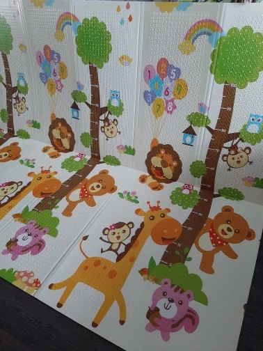 заказали коврик как на первом фото. прождали обработку заказа неделю. продавец извинился и сказал что такого коврика нет на складе( заказывали со склада Украины ) и предложил выслать другой расцветки. впринципе др коврик нам понравился, мы согласились. шел по Украине 3 дня с Одессы в Краматорск по укрпочте. пришел целый, в чехле. ковкик большой, толщина не 1см, а 0.7-0.8, но не критично, он теплый. можно его повредить чем-то острым, так что немного с ним нужно поаккуратней. легко вытирается, яркий рисунок, думаю любой расцветки будет смотреться хорошо. ростомер не соответствует сантиметрам, немного больше. в целом коврик понравился, ребенок в восторге, рекомендую! по цене норм, у нас такие дороже стоят.