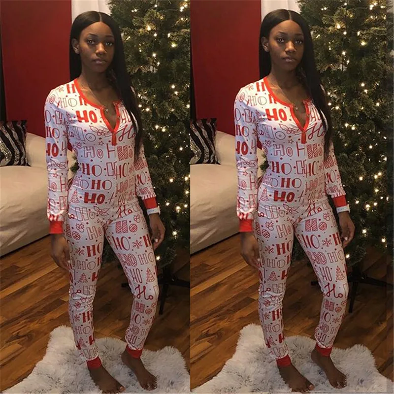 Хит продаж, модные рождественские пижамы для женщин пикантные пуговицы V образным вырезом узкие комбинезон длинные брюки для девочек осень бытовой комбинезон зимний комбинезон Пижама 2020