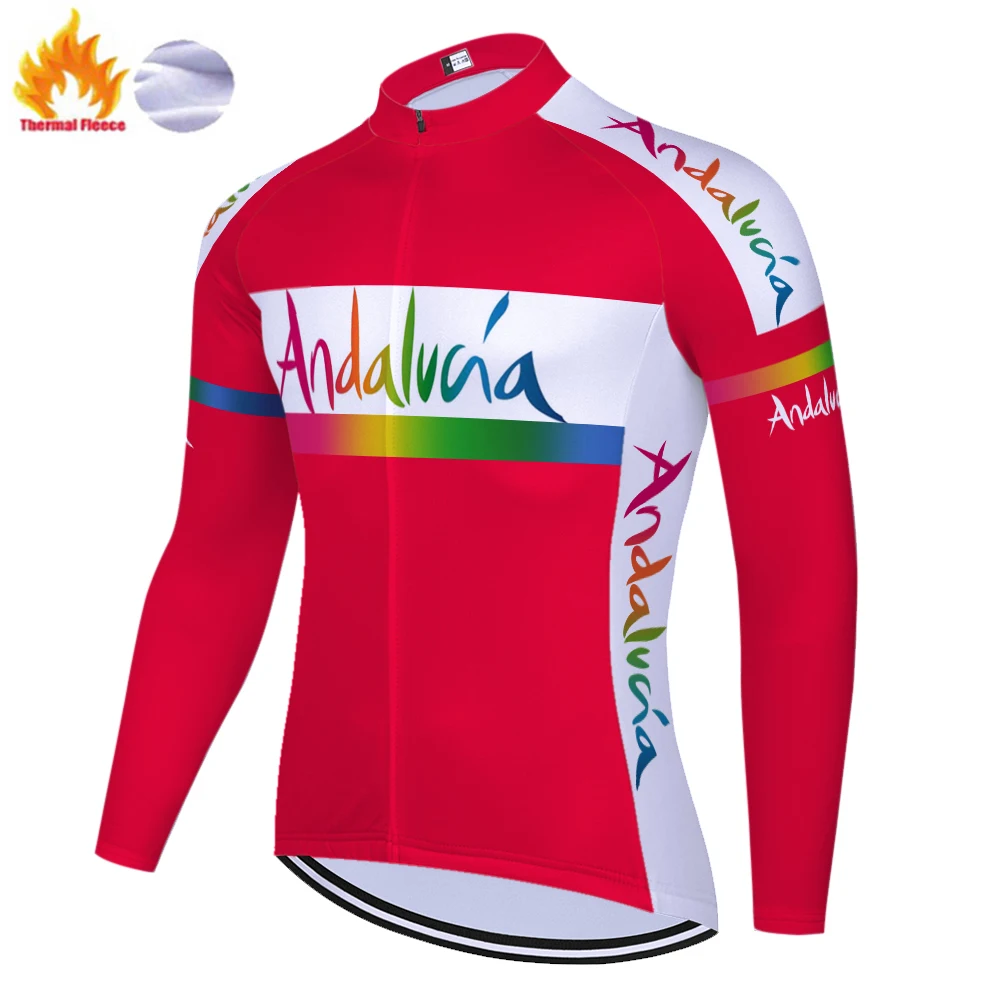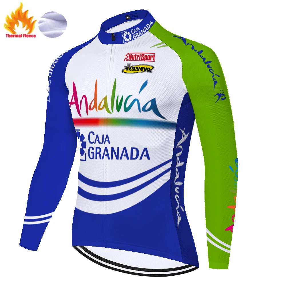 Испанская команда, черная андалусия, Зимняя Термальная флисовая майка, Мужская велосипедная Джерси, горная рубашка, велосипедная одежда, велосипедная куртка