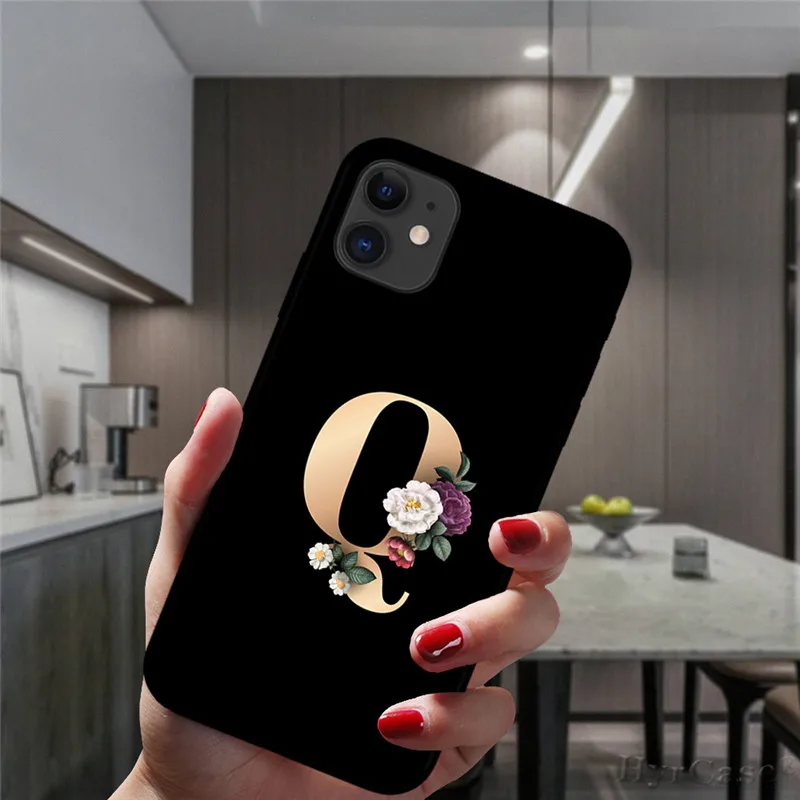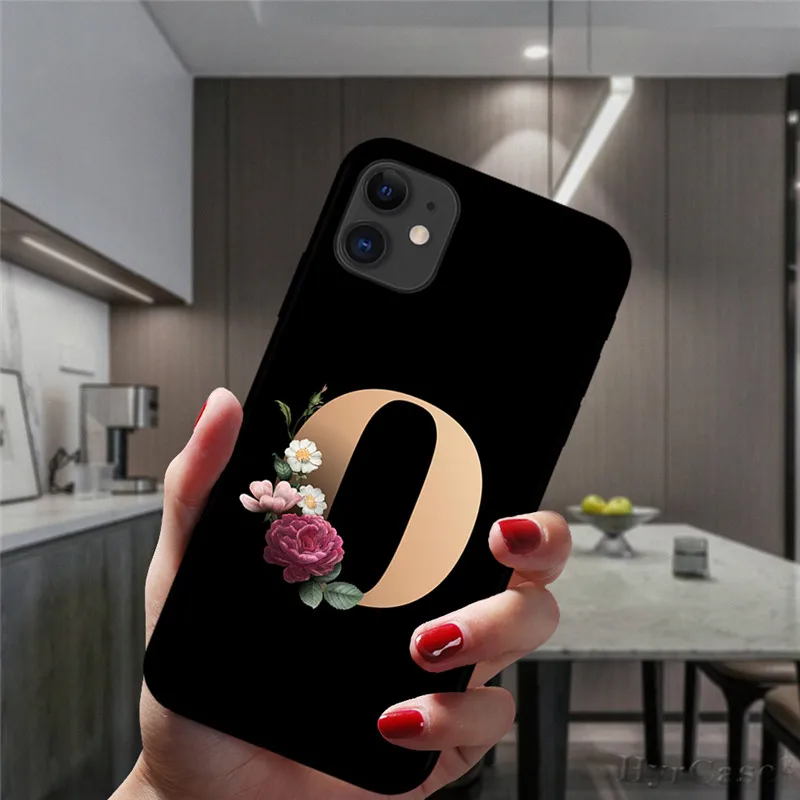 Оригинальный силиконовый чехол для iPhone 12 Mini 11 Pro XS Max X XR алфавит Черный чехол для телефона с буквенным именем 26 цветов на английском языке