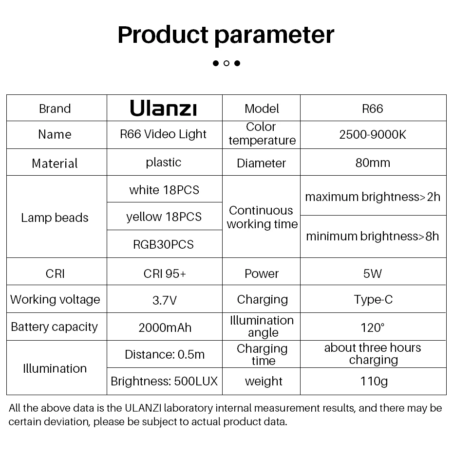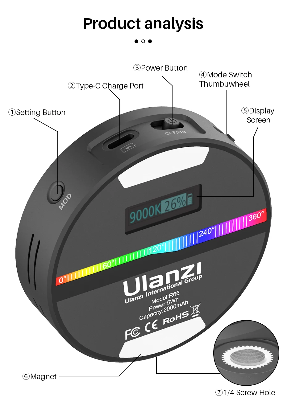 Светодиодный мини-светильник Ulanzi, 2000 мАч