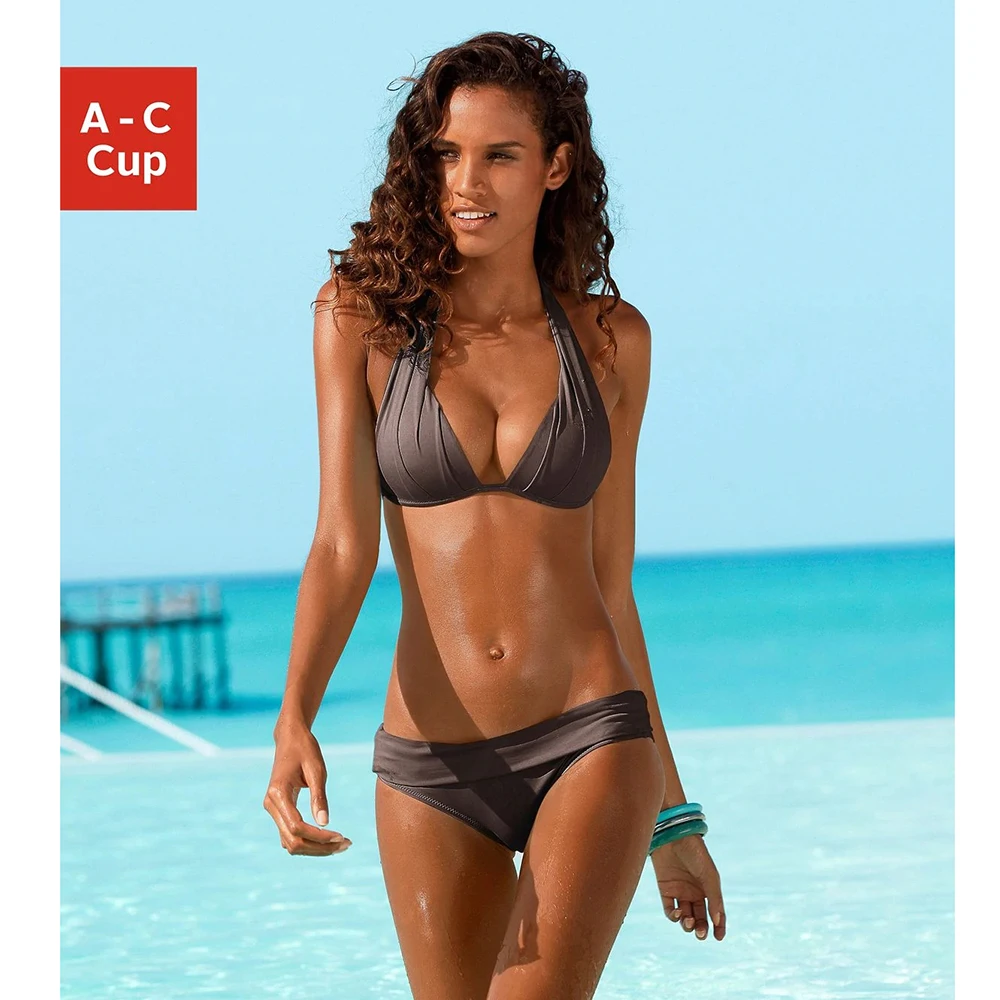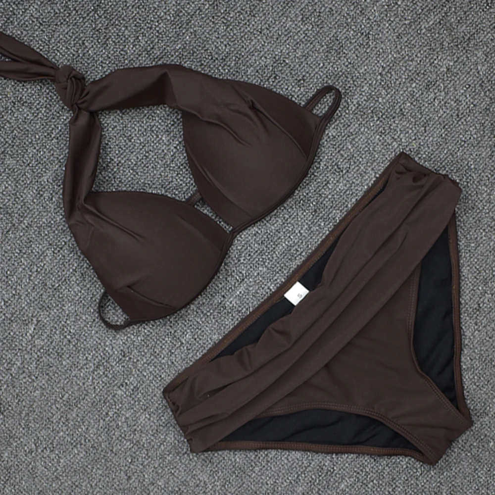 Сексуальный купальник-бикини с лямкой на шее, Женский комплект бикини из двух предметов, треугольный купальник пуш-ап, черный купальник с завязкой сзади, летние бикини размера S XL