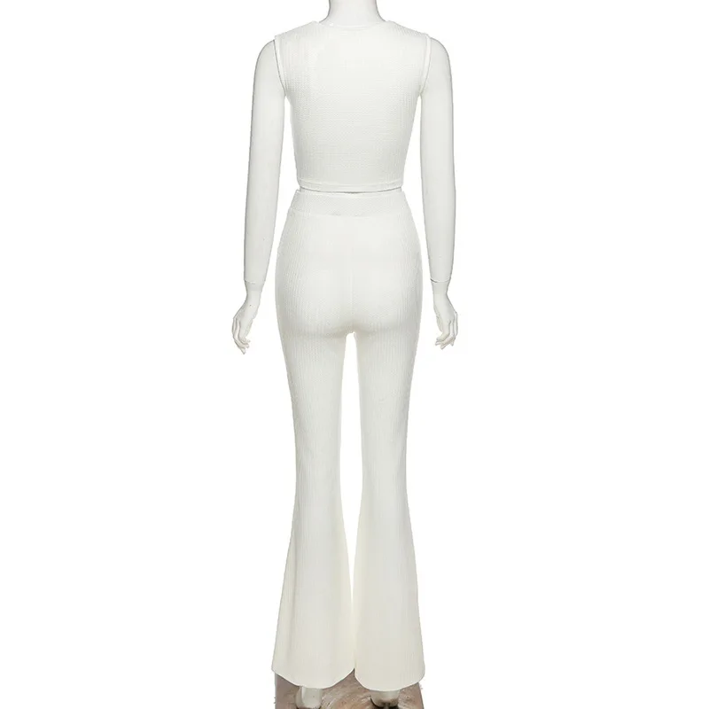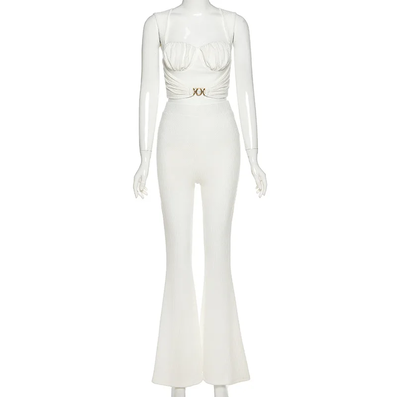 Cryptographicмодный наряд, сексуальный топ без рукавов и расклешенные штаны, длинный комплект из двух предметов, укороченный топ, Клубные вечерние комплекты, Осень-зима