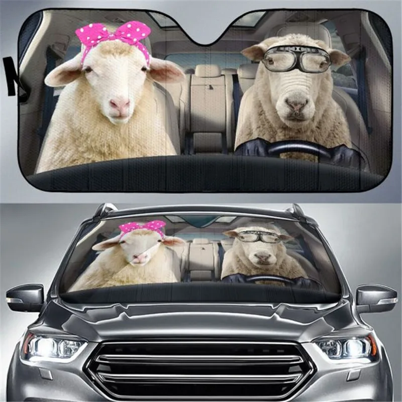 Забавная Альпака INSTANTARTS стильные автомобильные аксессуары с принтом пары, автомобильный тент для лобового стекла, складной прочный автомобильный солнцезащитный козырек