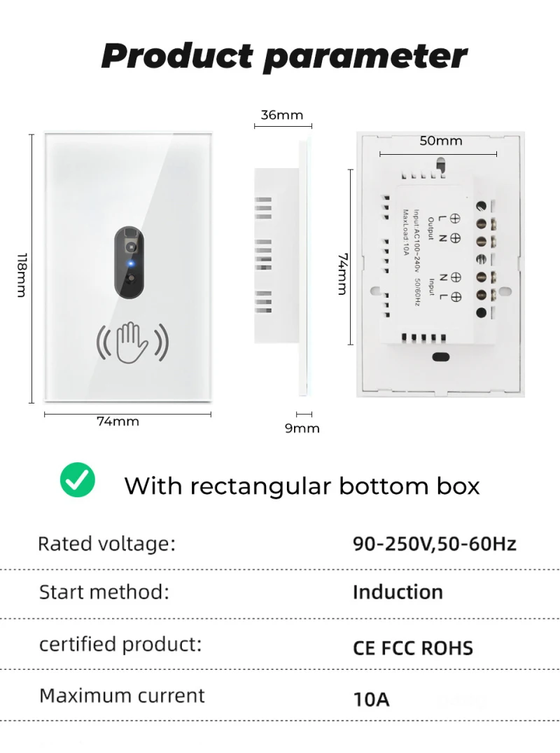 Настенный умный выключатель света 10 А, встроенный ИК-датчик, не тр...