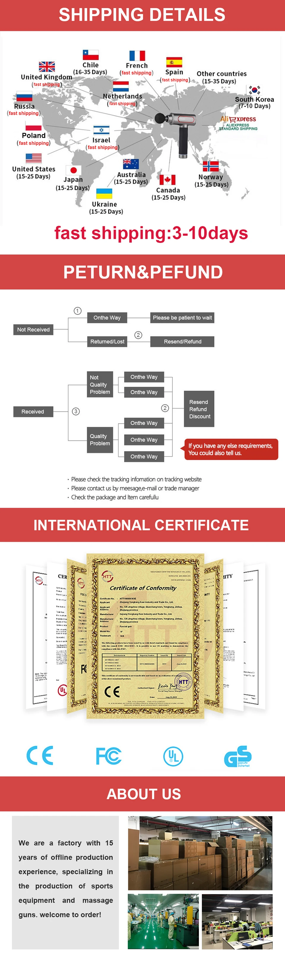 Посылка прибыла со склада Испании через неделю после размещения заказа. Упаковка была тщательной, содержимое не было повреждено. Устройство работает отлично, оно расслабляет мышцы вибрацией, но не заменяет работу профессионального массажера.