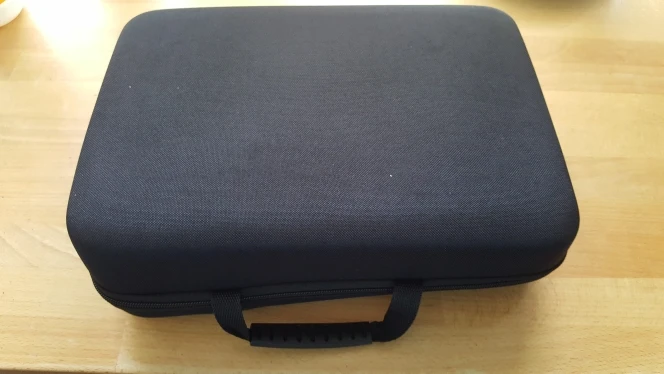 Пришло за два дня. Мощный, долго держит заряд, хороший удобный кейс.