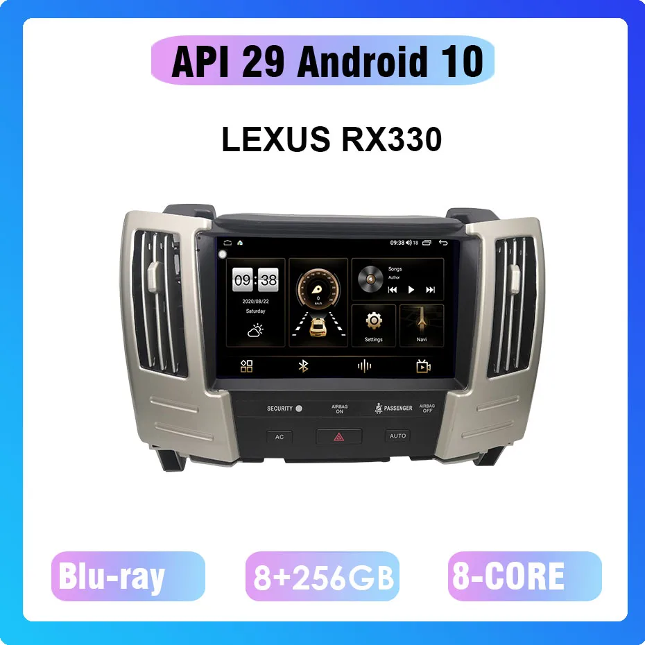 Мультимедийный плеер, 9 дюймов, Android 10,0, 8 ядер, 8 + 256 ГГц, GPS-навигация, Автомагнитола для LEXUS RX330 2004-2008
