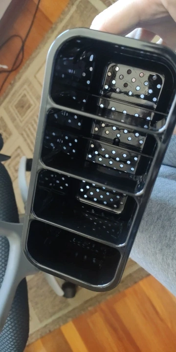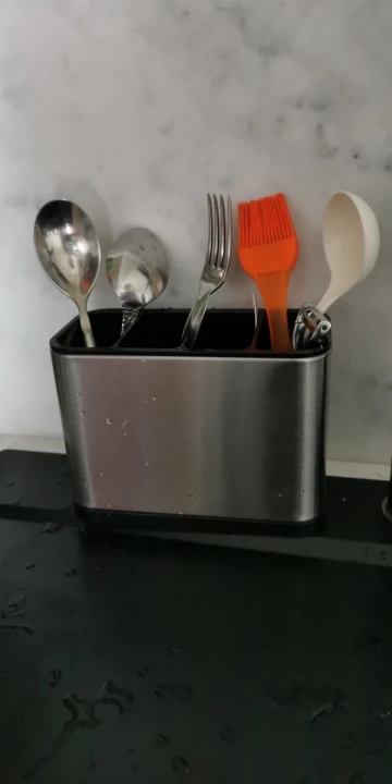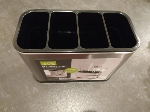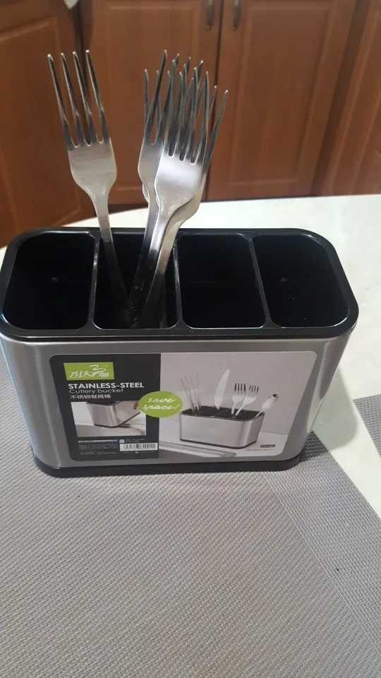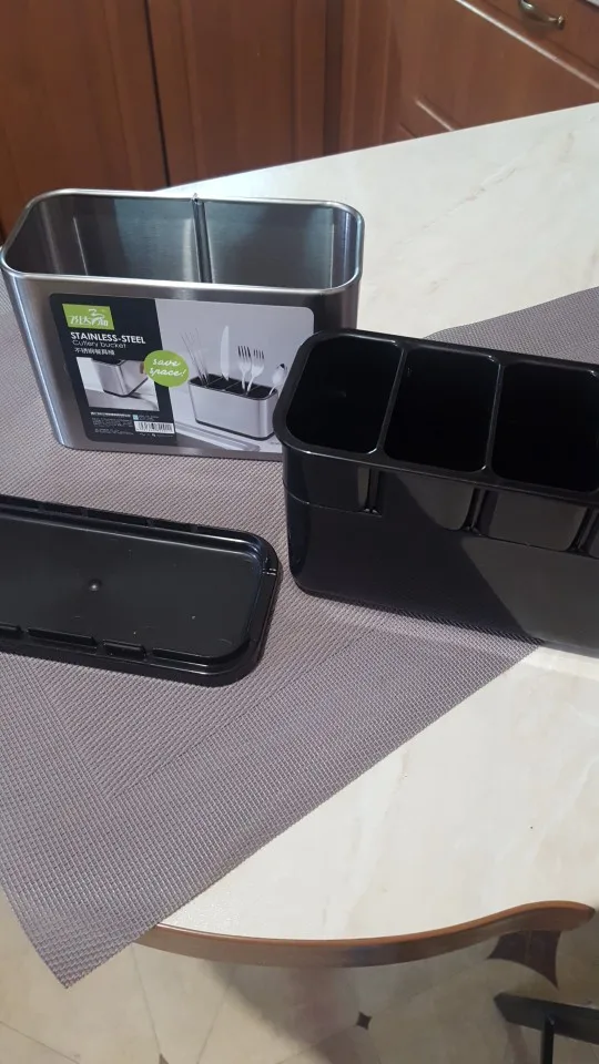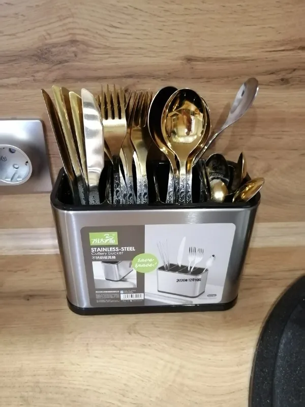 пришел с царапинами, пластика пожалели, что-бы сделать полные перегородки между секциями, чайные ложки могут и провалится в соседнюю секцию. Метал тонковат, легко царапается, для такого качества цена великовата.