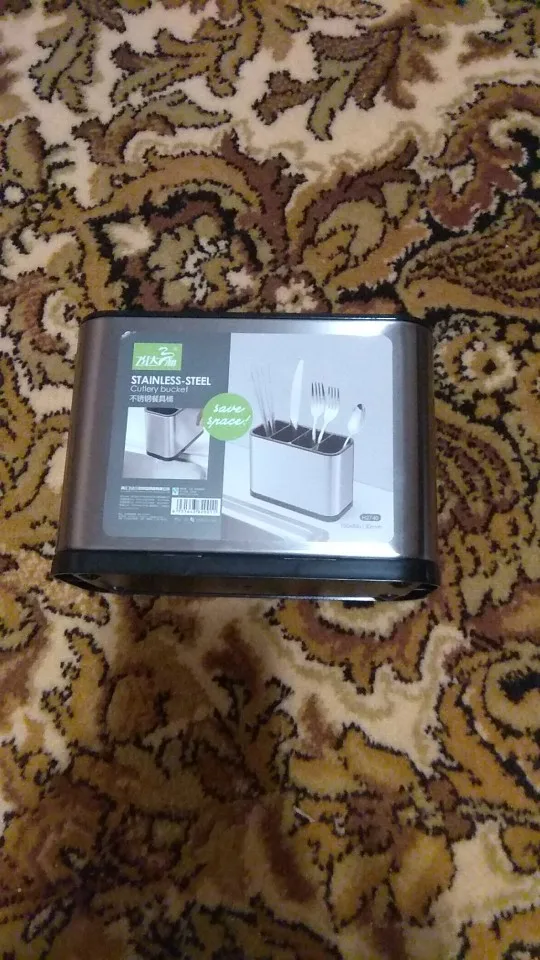 Отличная подставка для столовых приборов. Полностью соответствует описанию продавца. Пластик и металл очень качественный, не пахнет, гладкий, с однородной структурой. Качественно собрана, без изъянов. Товар был отправлен, но был возвращен. Продавец вскоре отписался, отправил посылку заново и прислал новый трек-номер. Посылка по этому номеру отслеживалась и пришла примерно за месяц. Подставка была очень хорошо упакована, в воздушную подушку, повредить товар при такой качественной упаковке было нереально. Покупкой довольны. Продавец порядочный. Рекомендую магазин.