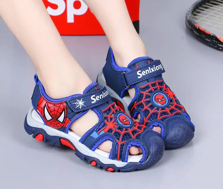 Сандалии Disney детские ортопедические из искусственной кожи, пляжные босоножки с закрытым носком, сандалии Спайдермен для начинающих ходить мальчиков, летние