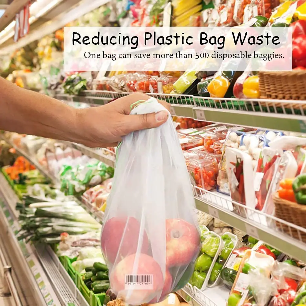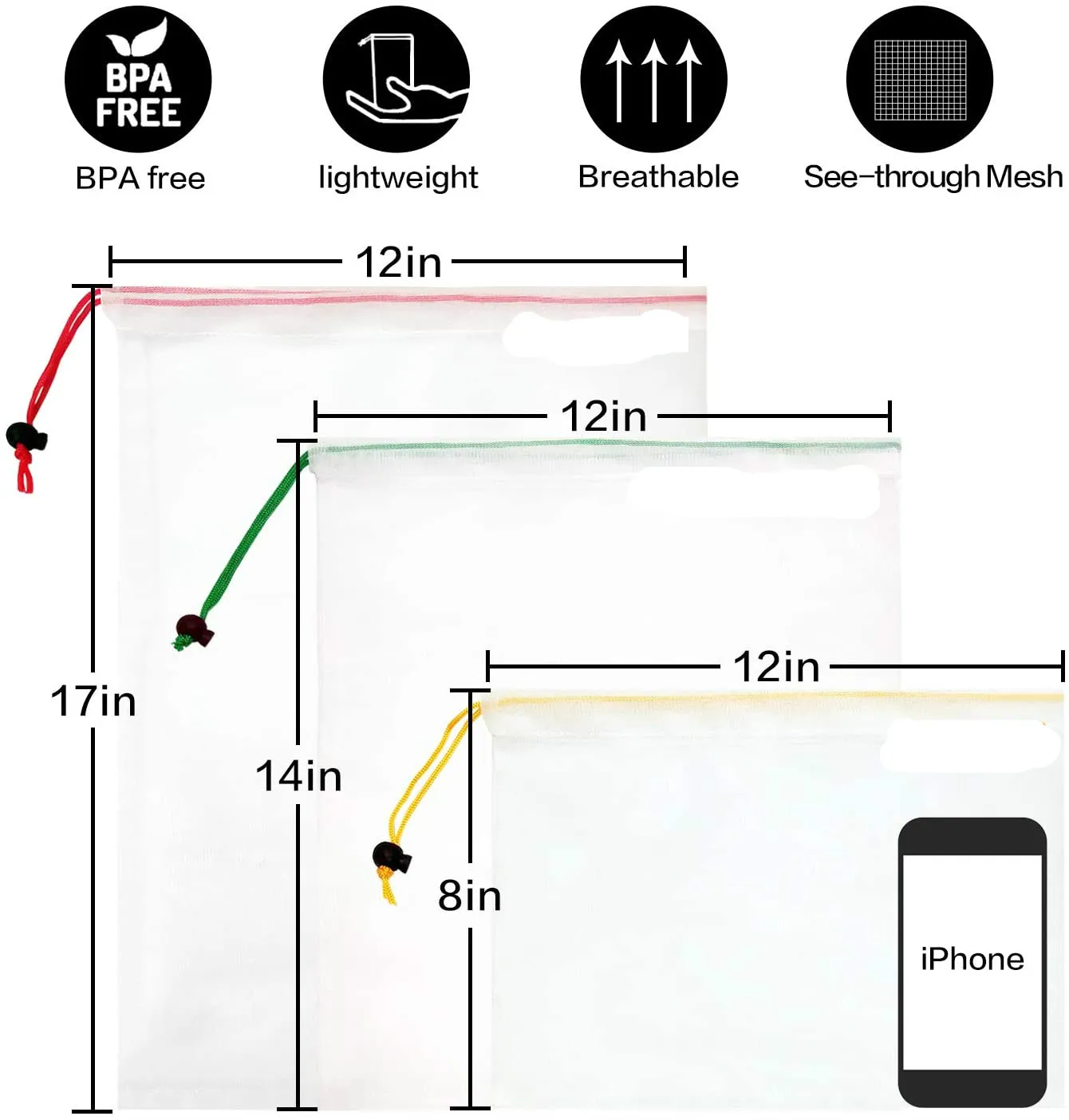 12 шт. многоразовые мешки для производства продуктов, моющиеся прозрачные Сетчатая Сумка для шопинга с кулиской для хранения продуктов, игрушек, фруктов и овощей