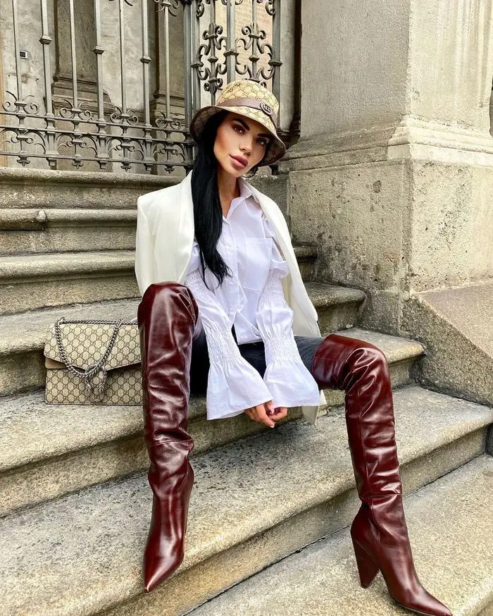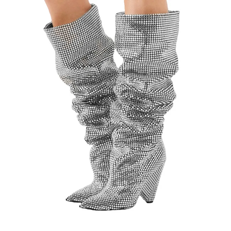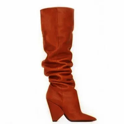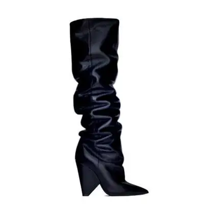 Сапоги женские выше колена, с острым носком, на необычном каблуке, Осень-зима 2021