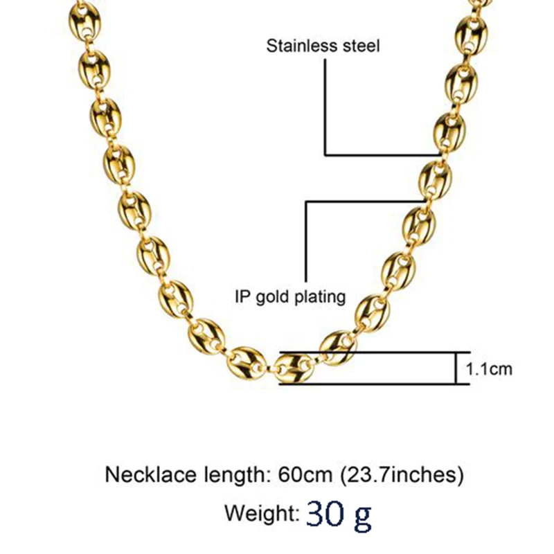 Цепочка US7 из звеньев кофейных зерен 11 мм, ожерелье для мужчин, ц...