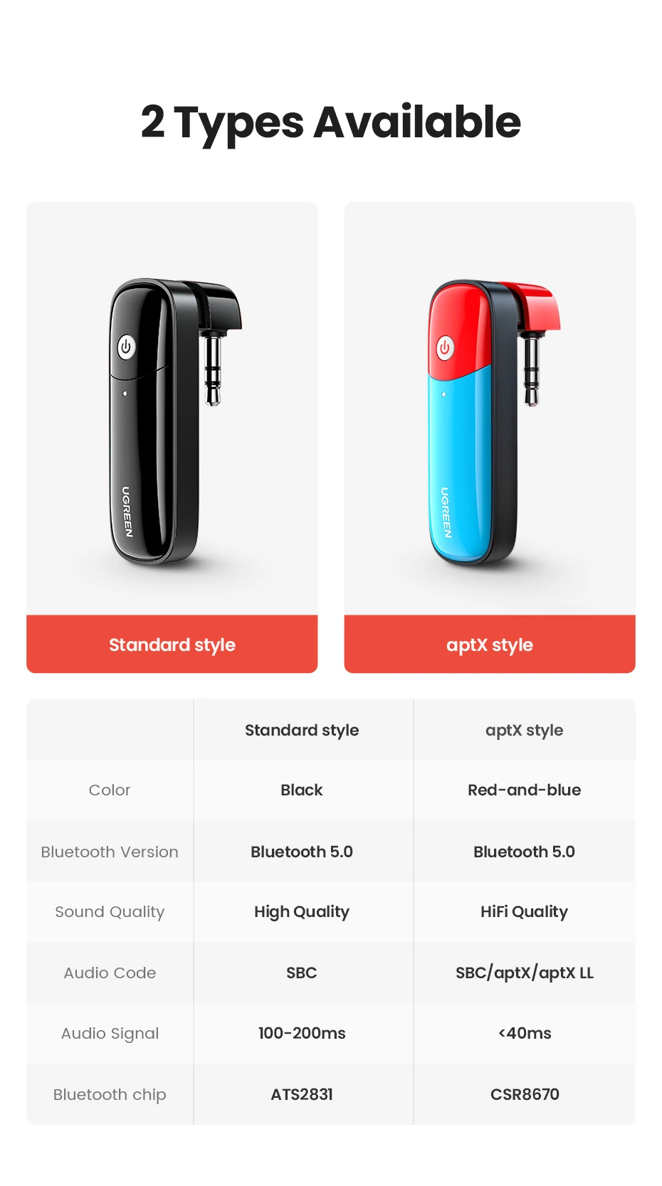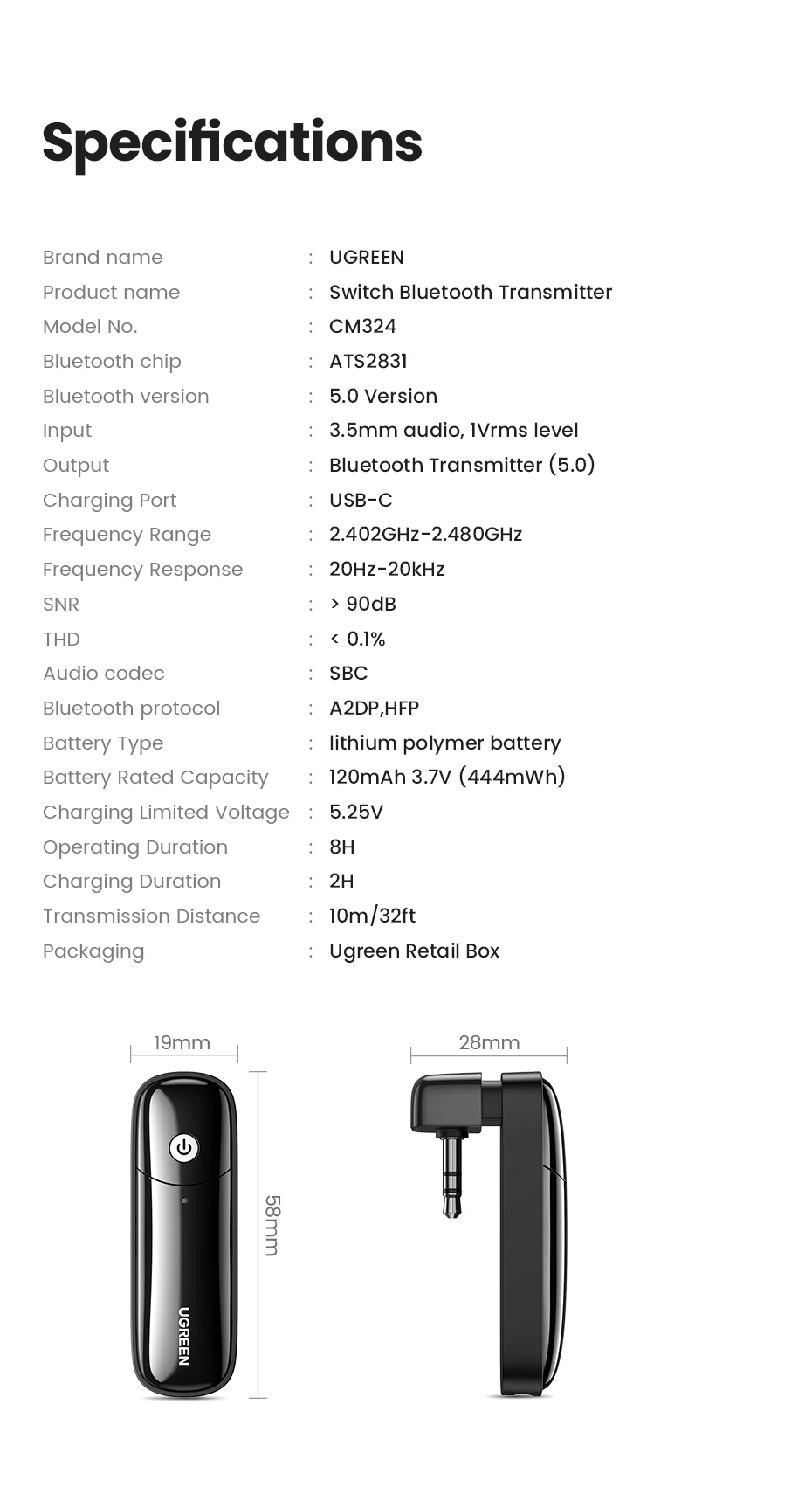 Передатчик UGREEN Bluetooth 5,0 для наушников Nintendo Switch Lite 3,5 3,5 мм