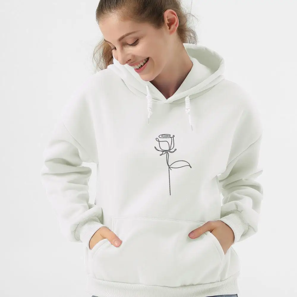 Женские толстовки Harajuku с розой, Зимние толстовки с цветочным пр...