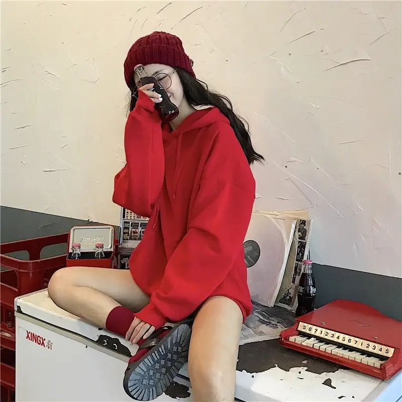 Женские толстовки в стиле Харадзюку, однотонный свитшот с капюшоном...