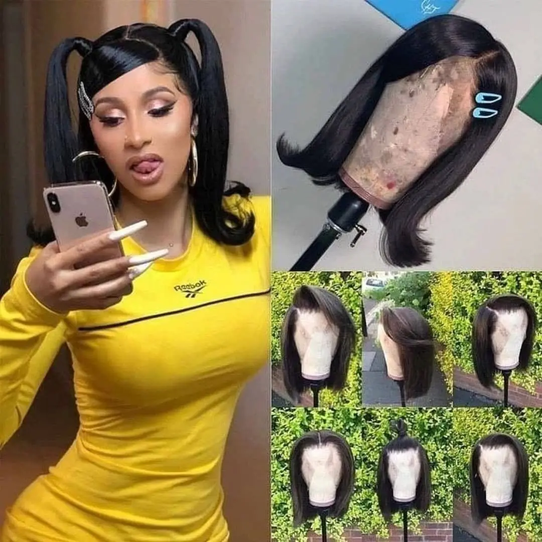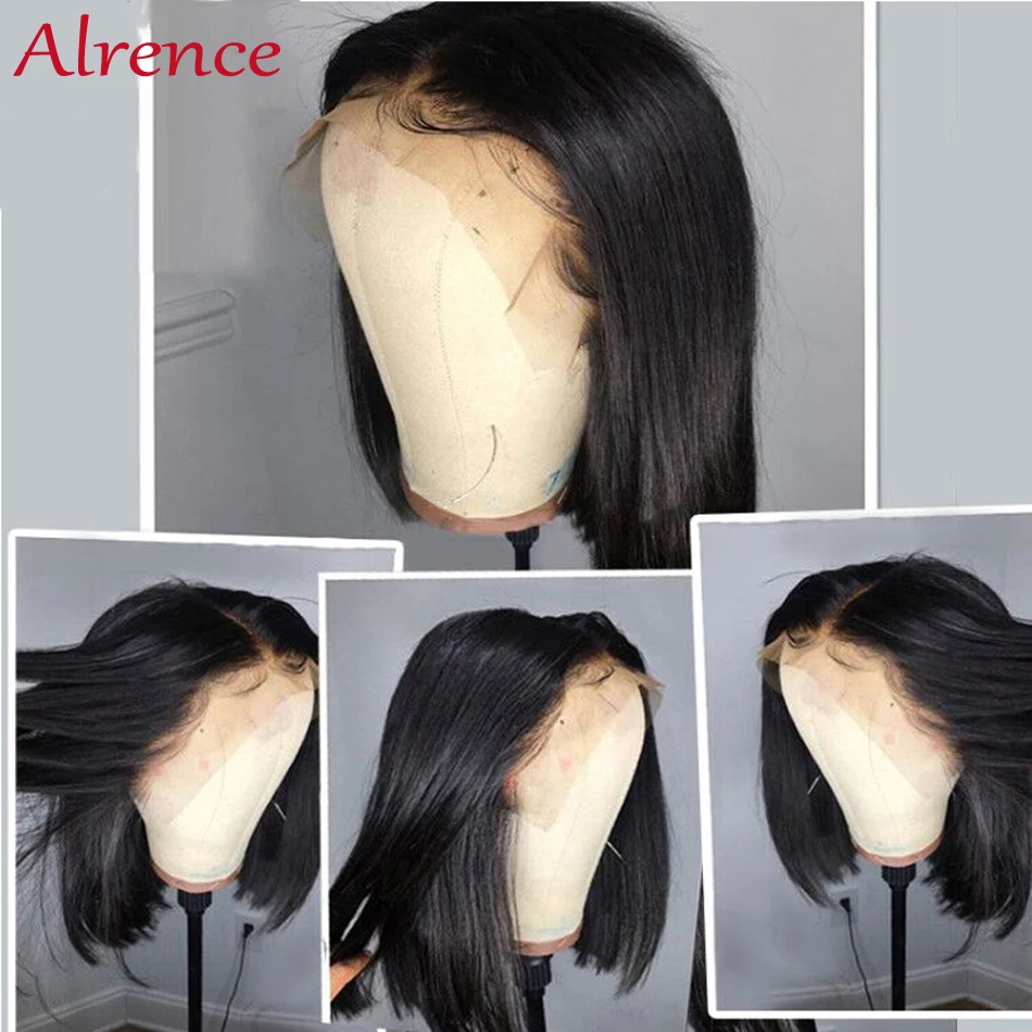 Прямые короткие парики из человеческих волос на сетке спереди, бразильский фронтальный парик, предварительно выщипанные Детские волосы, бесплатная доставка, парики из натуральных волос
