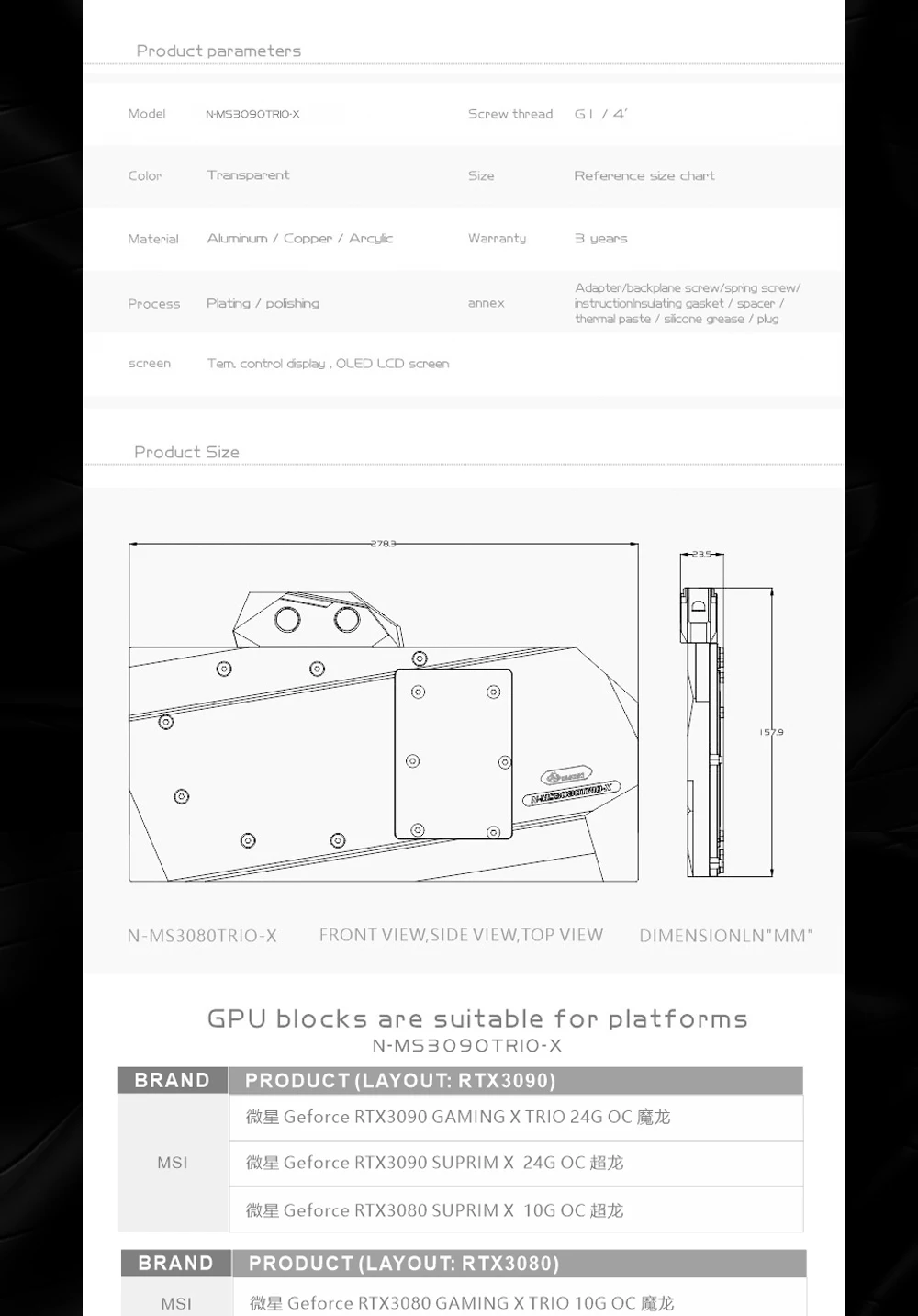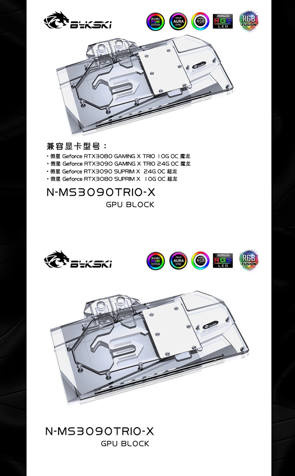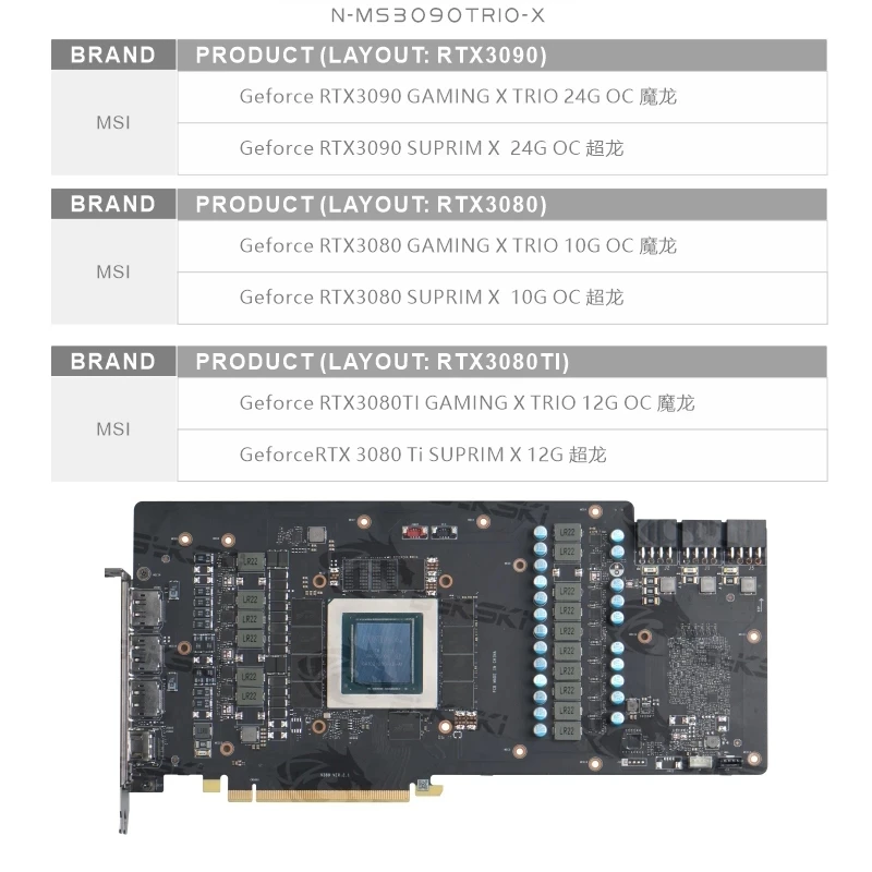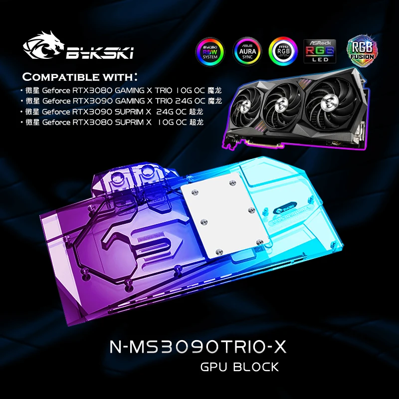 Водяной блок Bykski N-MS3090TRIO-X GPU для видеокарты MSI RTX 3080 3090 GAMING X TRIO SUPRIM, кулер VGA 5 в A-RGB12 в RGB