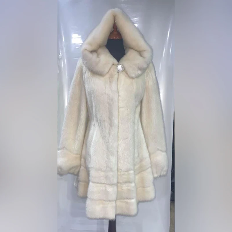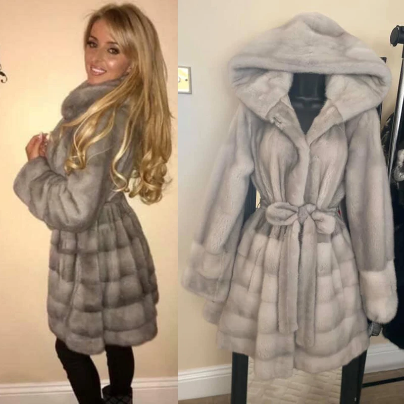 Новинка, зимняя шуба YZ Furture из натурального меха норки, куртка с капюшоном и короткой юбкой, Женская Толстая теплая верхняя одежда из натуральной кожи