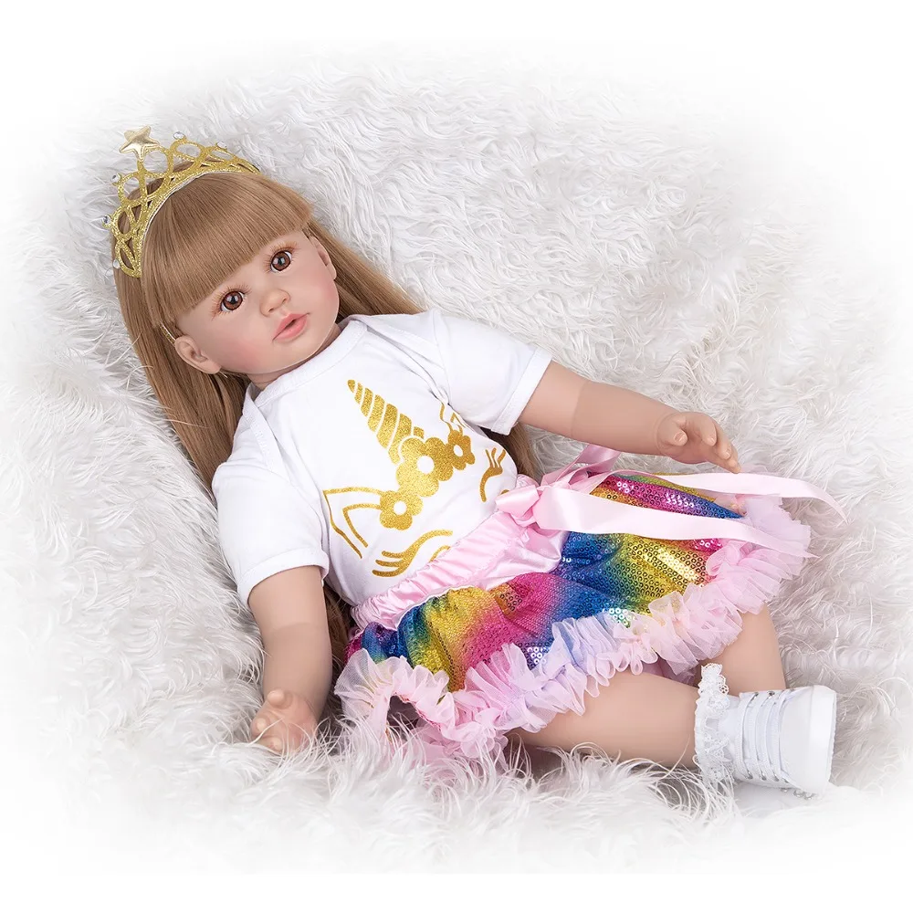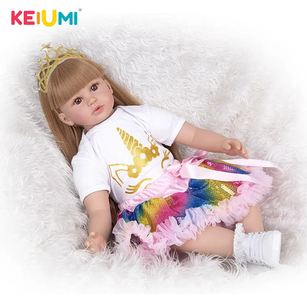 Кукла новорожденная KEIUMI, из мягкого силикона, с прямыми золотыми волосами, 60 см