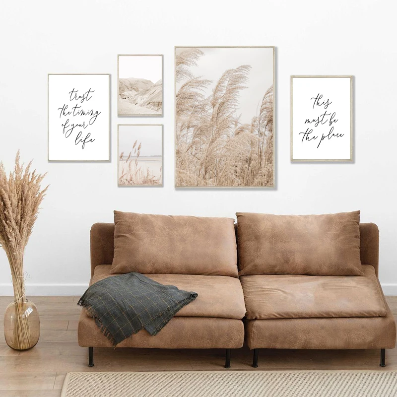 Винтажные растения натуральной пампасной травы Плакаты и принты Горный пейзаж побережье настенный художественный холст для живописи Декор в гостиную