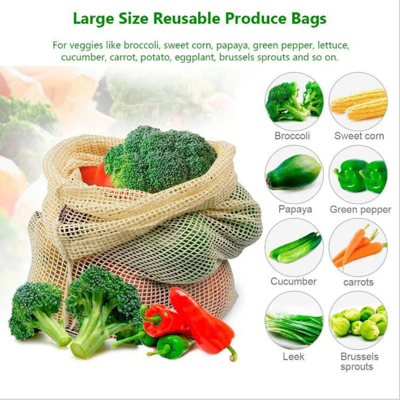 Комплект из 3 предметов, для хранения фруктов и овощей для многоразовый мешок хлопковое фатиновое платье для производства пакетов кухонные овощные Бакалея Эко сумка для хранения