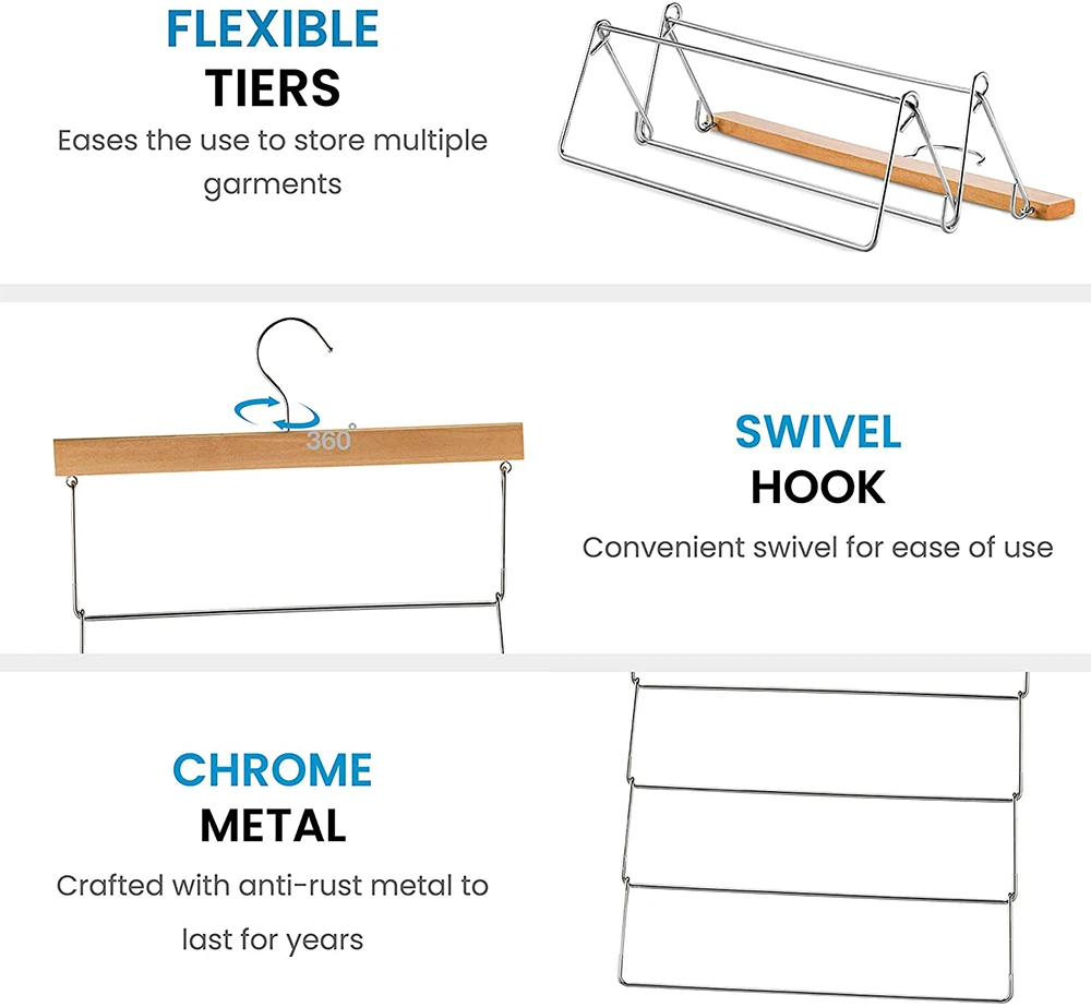 4. Экономия пространства-складные слойные вешалки идеально подходят для путешествий и хранения, вешалка складывается до размера одноуровневой вешалки. Помещается в ящике, чемодане или даже ручной багаж.
