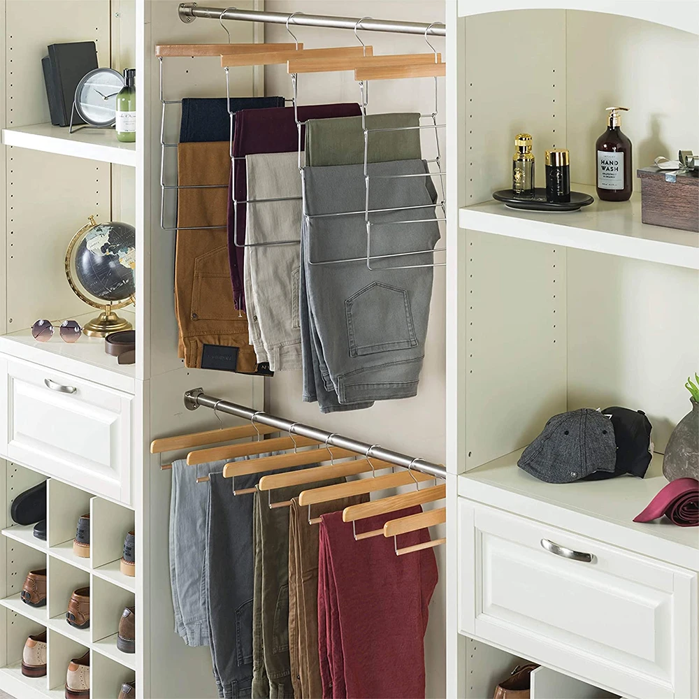 Роскошная многофункциональная деревянная вешалка для брюк, 4-уровневый органайзер, складные вешалки для брюк для одежды, для экономии места в шкафу