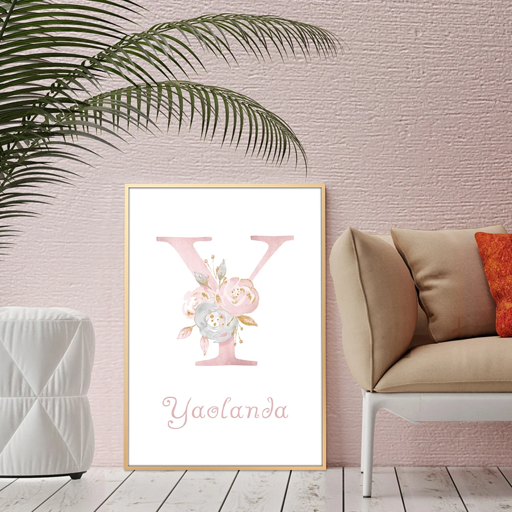 Персонализированный настенный постер для маленьких девочек с надписью имя цветок для детской комнаты декор для гостиной Эстетическая Картина на холсте
