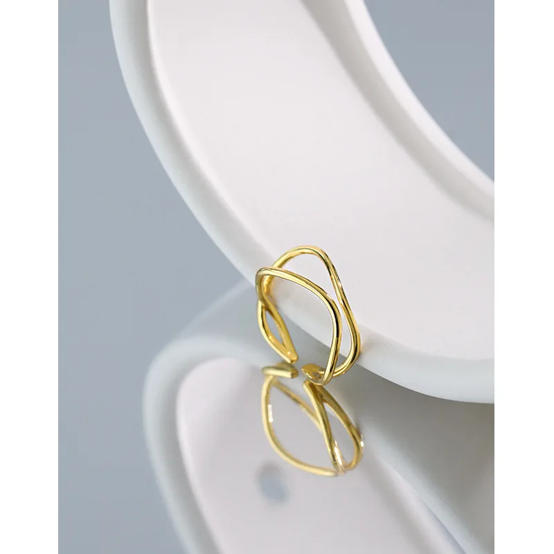 Женское Открытое кольцо SHANICE, минималистичное Двухслойное кольцо из стерлингового серебра 925 пробы с переплетением линий, ювелирные украшения для женщин