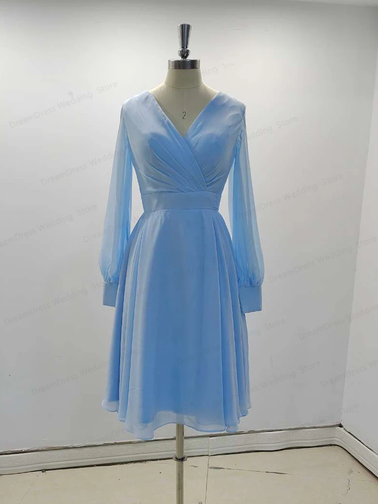 Женское шифоновое платье с V-образным вырезом, длиной до колена