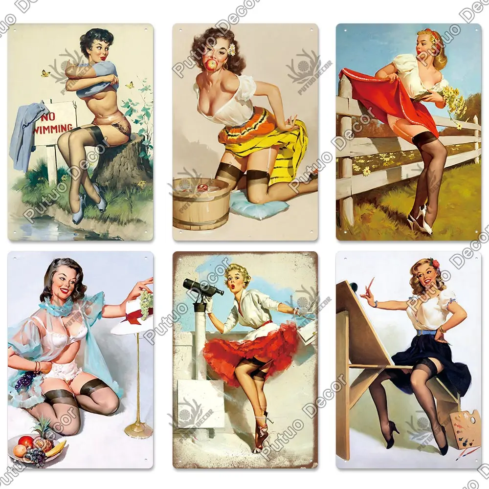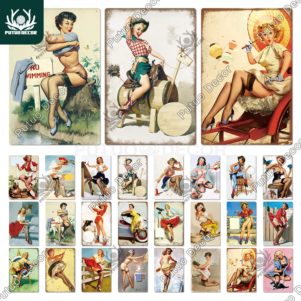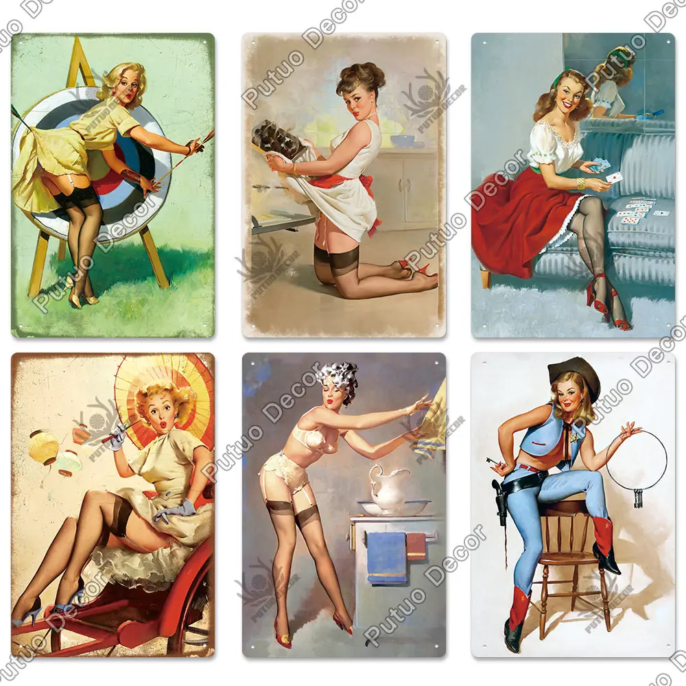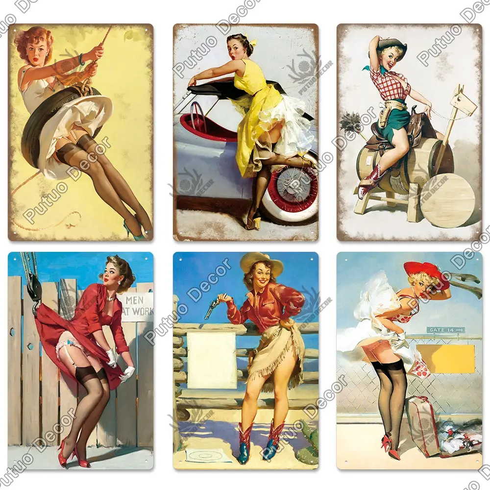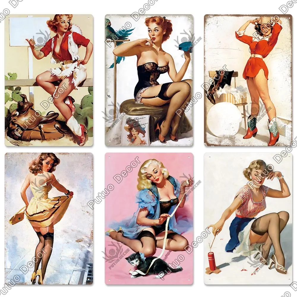 Сексуальная девушка винтажная металлическая табличка металлический ...