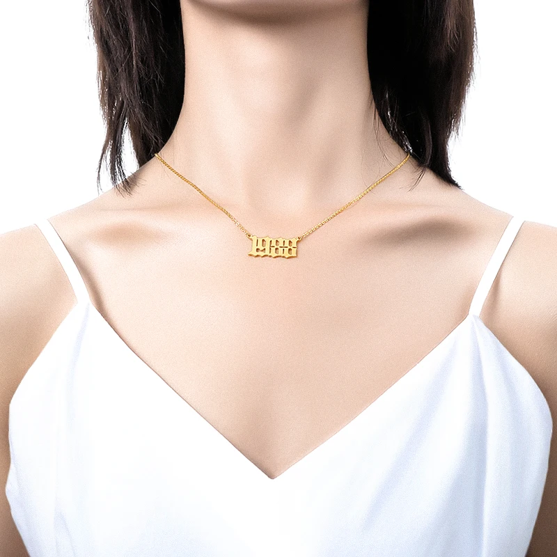 Ожерелье с цифрами на год, Женская цепочка из нержавеющей стали зол...