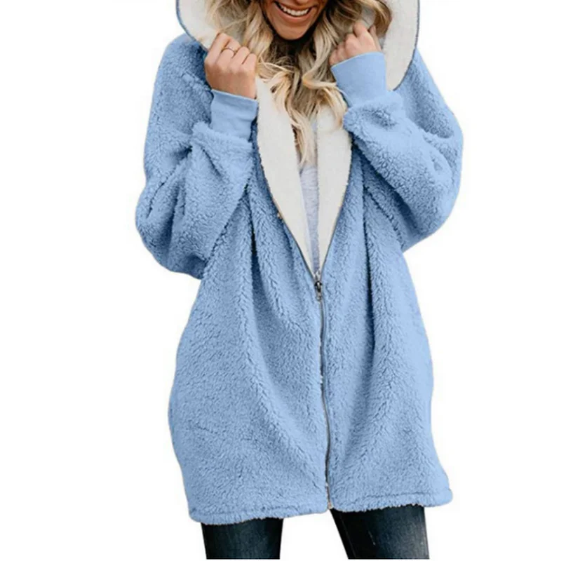 Зимнее плюшевое длинное пальто, женская куртка на молнии, свободное пушистое пальто с капюшоном, женское теплое флисовое Мягкое повседневное худи с карманами, размера плюс