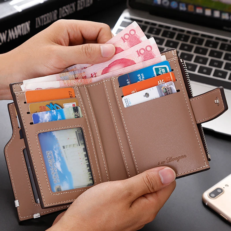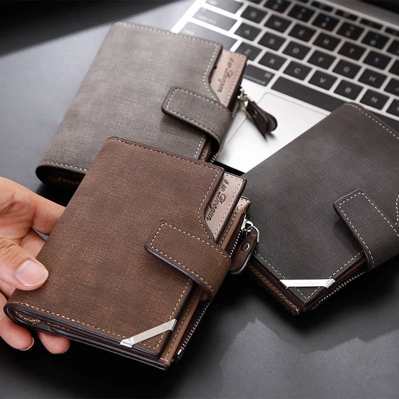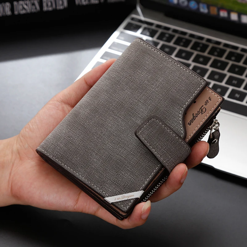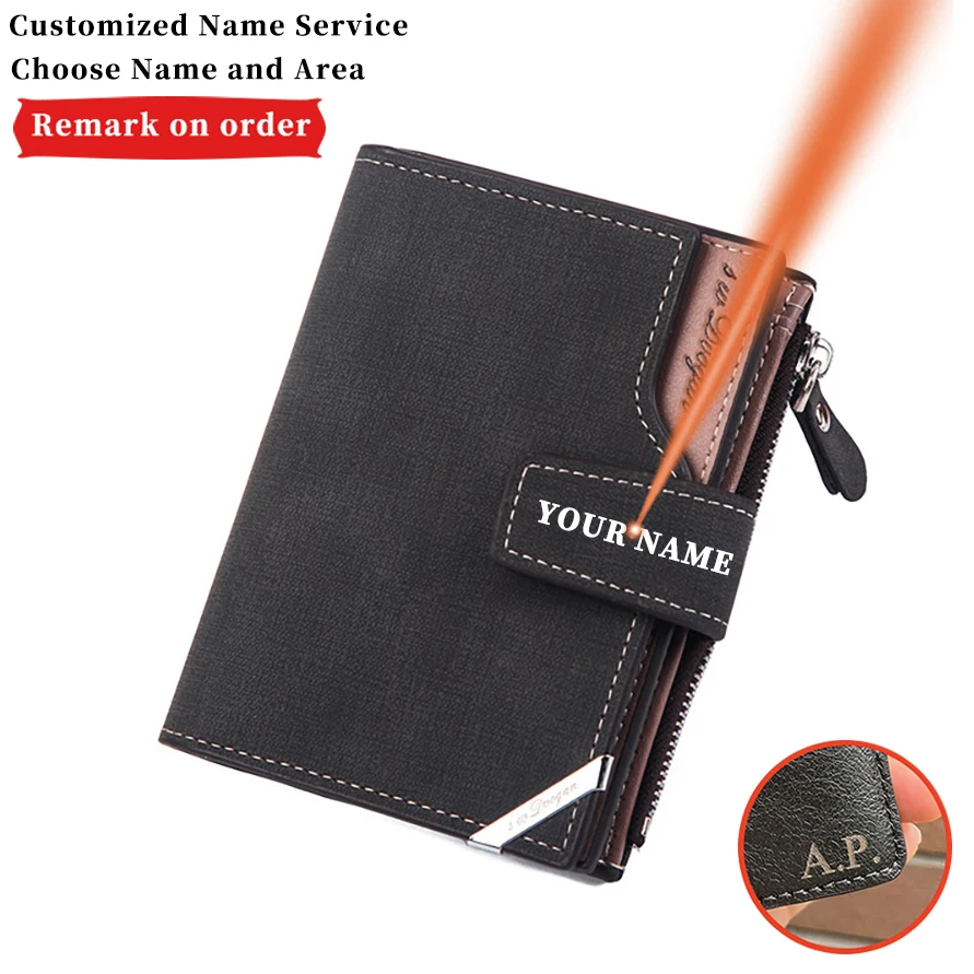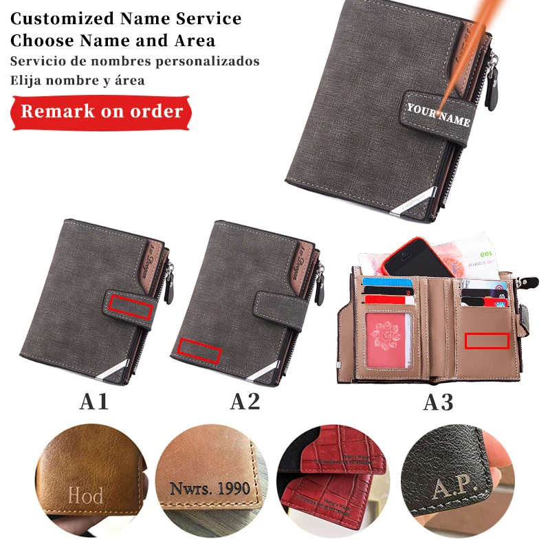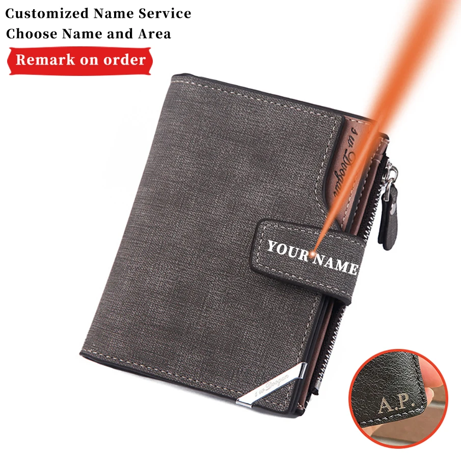 Дизайн в стиле ретро высокого Ёмкость кошелек с отделением для монет на молнии, персонализированное кошелек с местом для фото Для мужчин короткий кошелек подарок для Для мужчин Муж