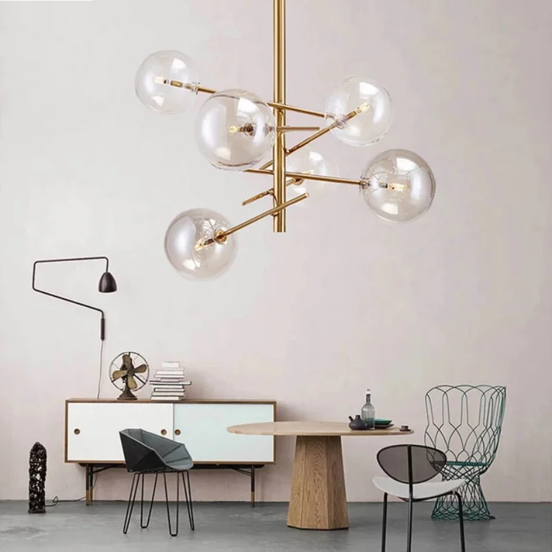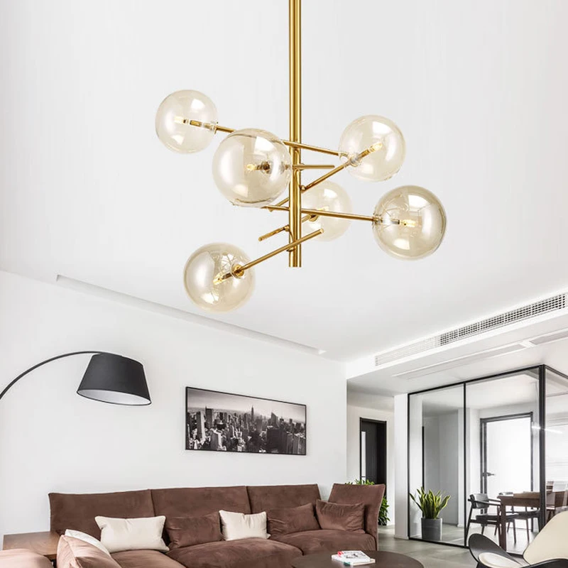 Дизайнерская люстра в виде пузырьков, лампа из золотого стекла для столовой, кухни, ресторана, люстра в виде шара подвесной светильник