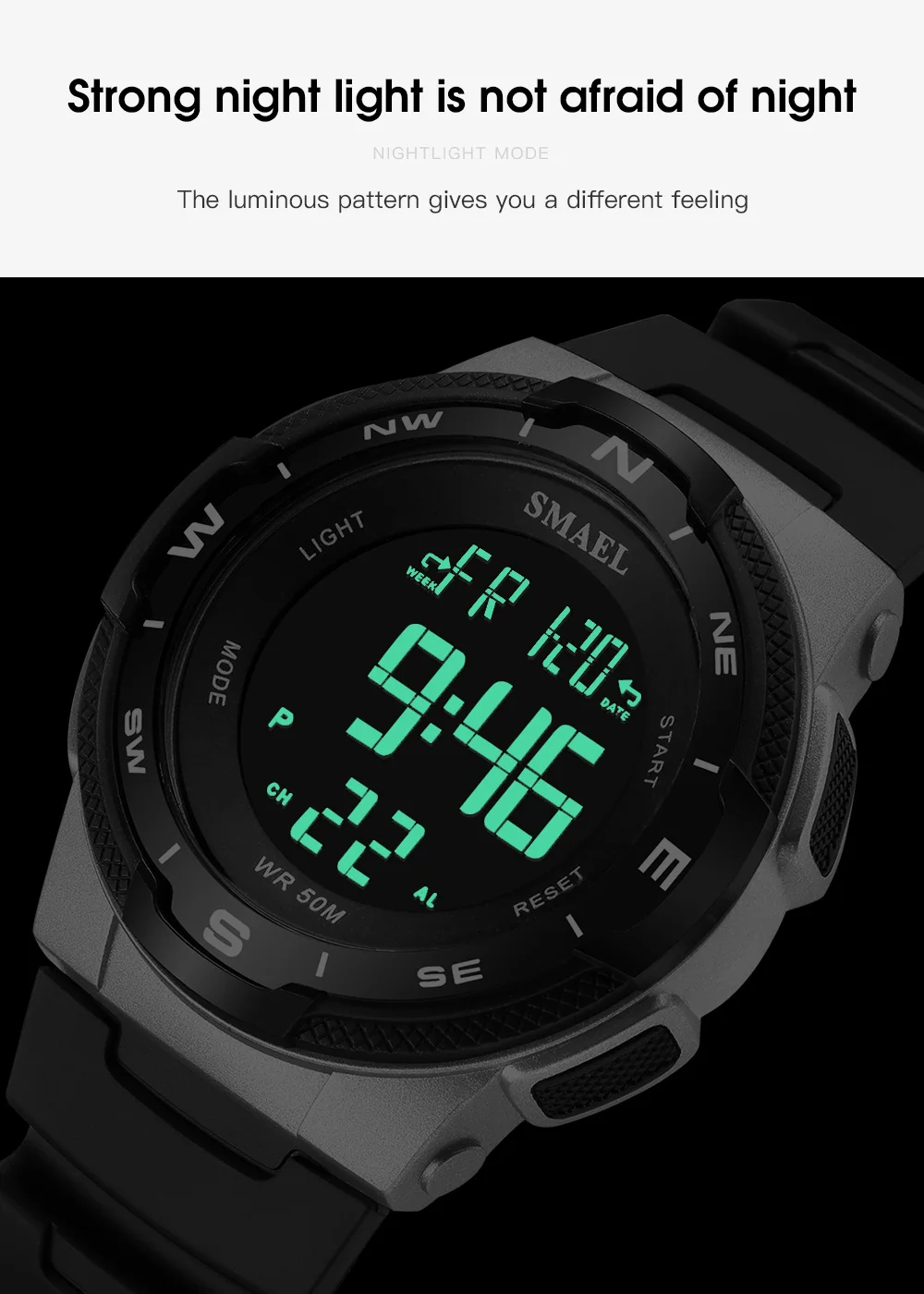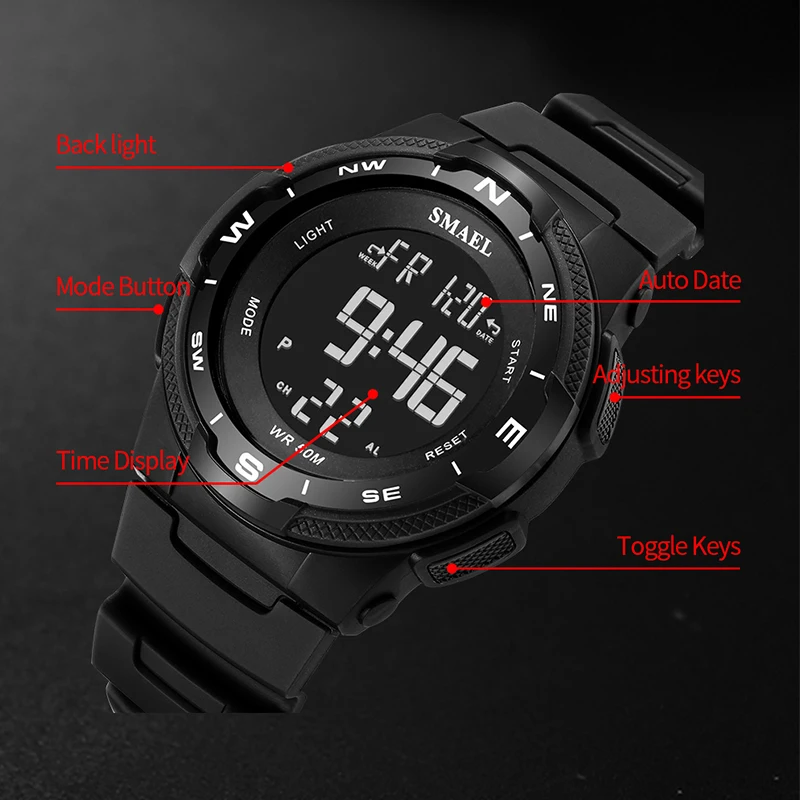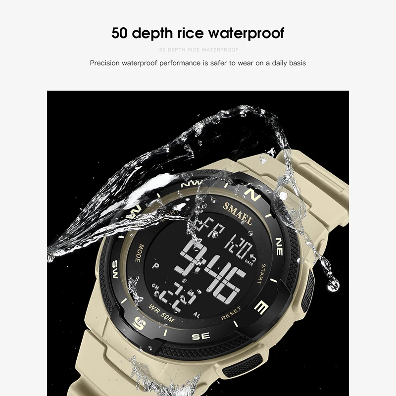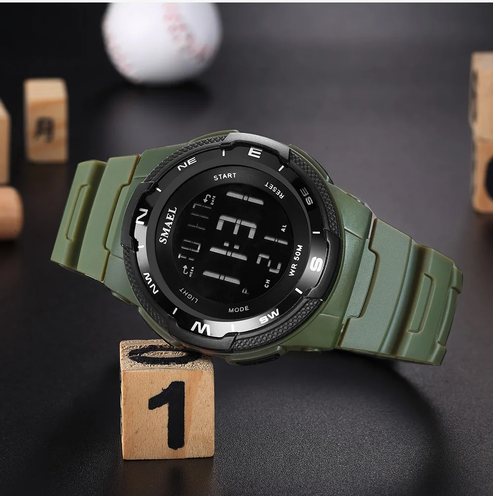 Цифровые спортивные водонепроницаемые часы SMAEL, спортивные часы, светящийся секундомер, мужские часы 1362B, военные часы для мужчин