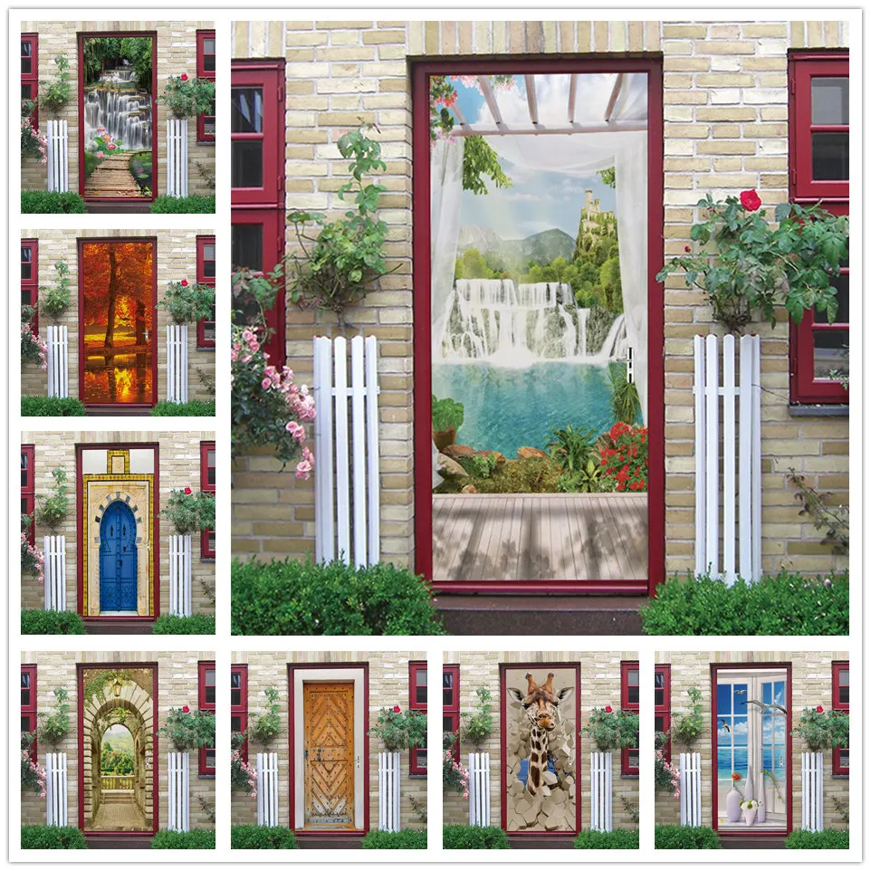 Наклейка с водопадом для двери DIY самоклеющийся плакат ПВХ Наклейка на стену украшение спальни обои Жираф роспись домашний декор