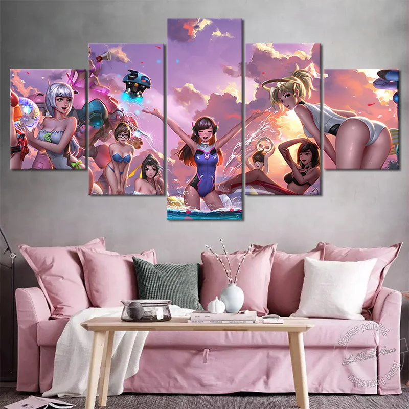 Модульные плакаты, 5 шт., японские аниме-персонажи, холст, HD-печат...